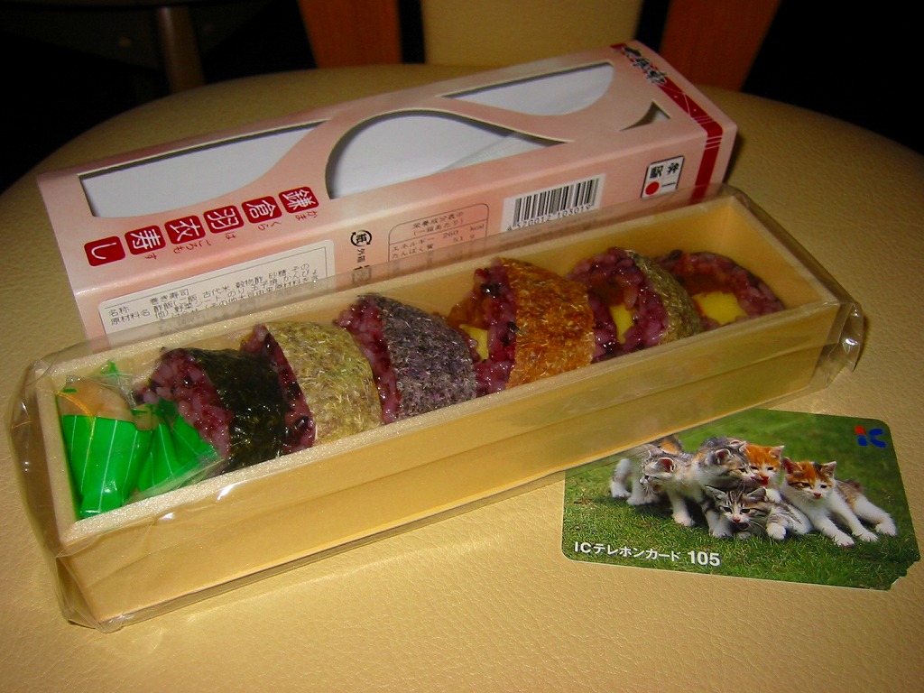 2003(平成15)年6月14日の発売。細身な容器の中に、太巻きにしては細く細巻きにしては太い、玉子焼とかんぴょうの巻き寿司が6個入る。酢飯には古代米の黒米に紫色に染めた米を、海苔代わりにキャベツ・ニンジン・カボチャ・シソの繊維で作った野菜シートを使用し、分量に対して値段は張るが個性的な味と外観を手に入れた。中高年の女性をターゲットに発売したというヘルシーな駅弁。2005年6月17日限りで終売となった。
