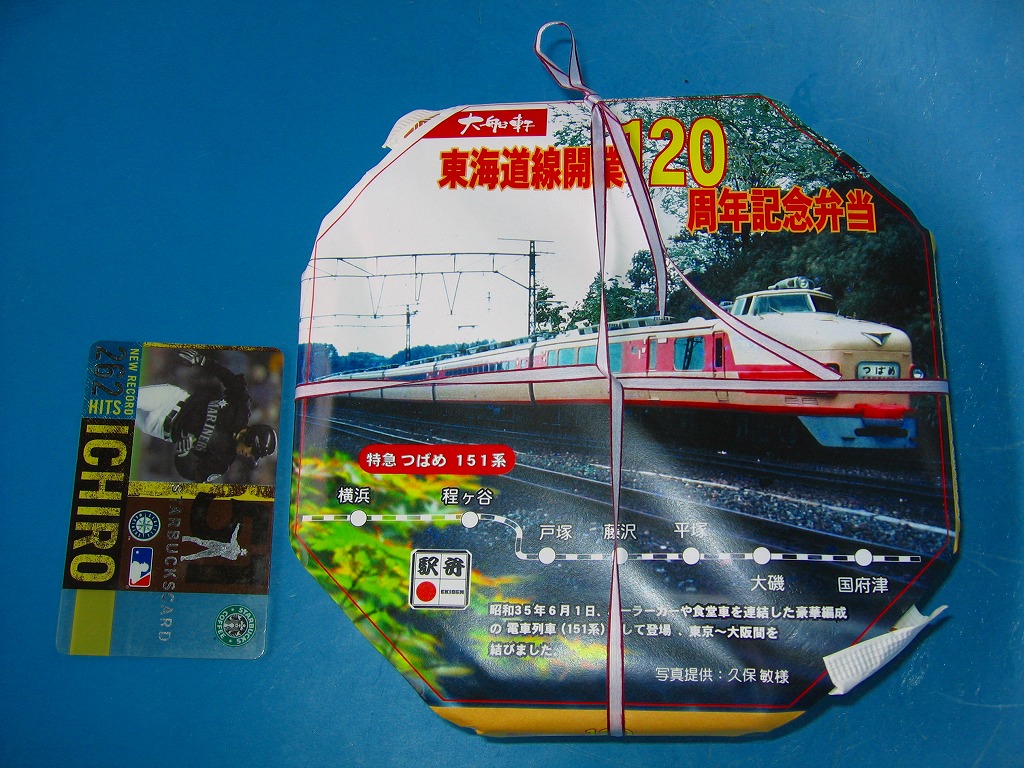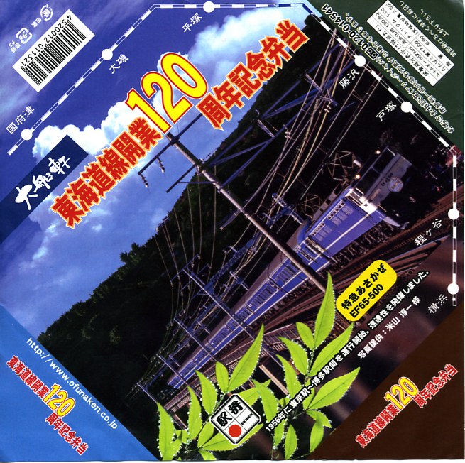 名前のとおりの記念駅弁。横浜・国府津間の開業120周年を記念して、2007(平成19)年7月11日から24日までを3期に分け、同じ名前と価格で掛紙を替えて販売した。これは15日から19日まで販売の第2弾で、1960(昭和35)年当時に大船駅を通過していた、パーラーカー付き特急「つばめ号」の写真を採用した。