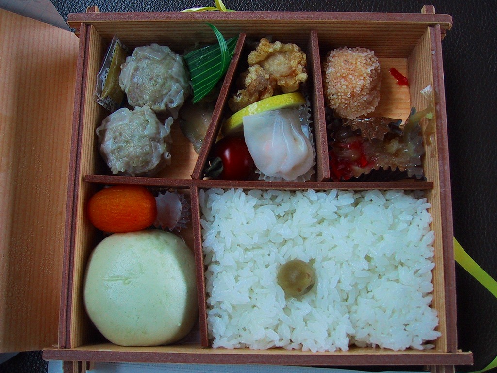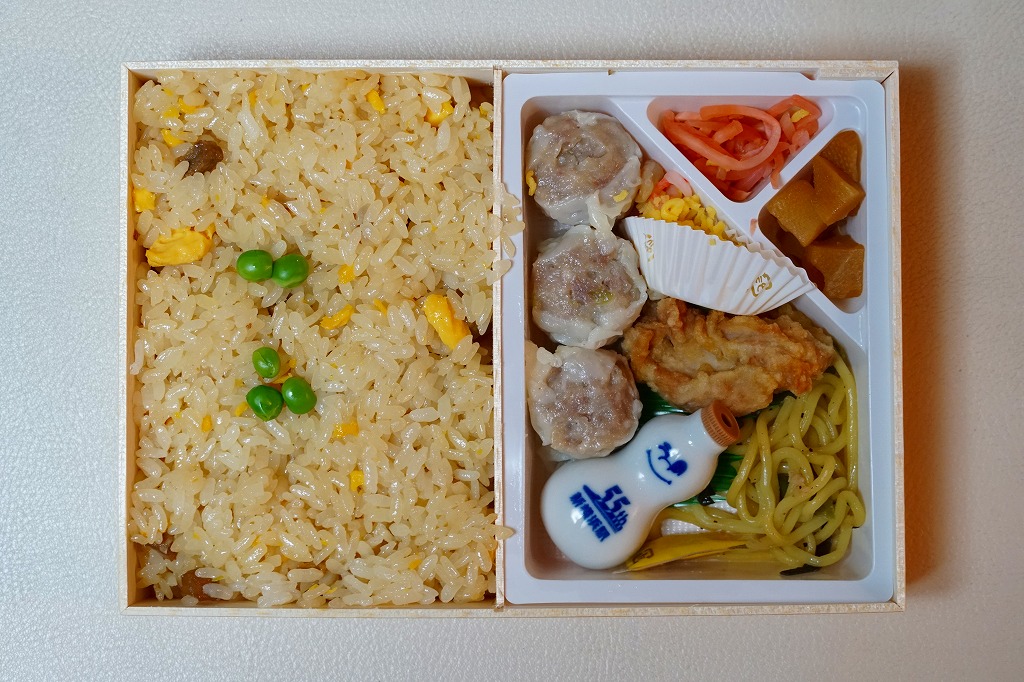 1987(昭和62)年11月にJR東海の「新幹線グルメ」キャンペーンで誕生した駅弁。長方形の厚みのある容器に、白飯とシウマイ・海老団子・鶏唐揚にミニ中華まんとあんずが入る。崎陽軒の駅弁の中では最も容器がしっかりしている。