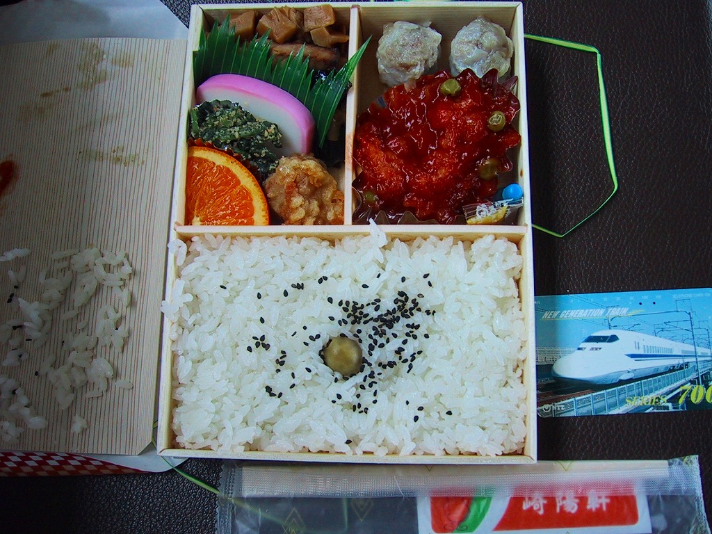 新横浜駅の新幹線ホーム上でのみ入手できる、崎陽軒の新横浜駅限定販売の幕の内弁当。看板駅弁「シウマイ御弁當」より一回り大きな経木枠の長方形の容器を使用、半分弱を白御飯、半分弱をおかずで占める。おなじみのシウマイや角切りタケノコと、鶏唐揚や鮪照焼、そしてたっぷりの海老チリなど。駅弁屋さんの公式サイトを含め世間に紹介されることがほとんどない幻の駅弁。少なくとも2005年までに販売が終了したと思われる。