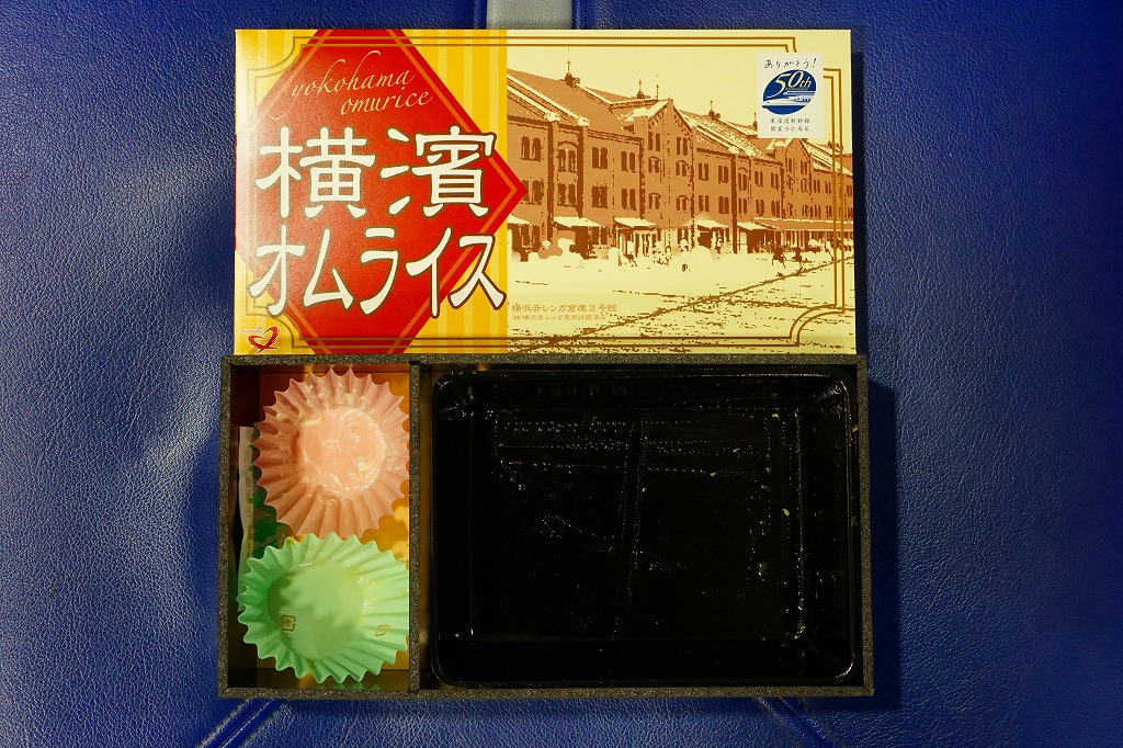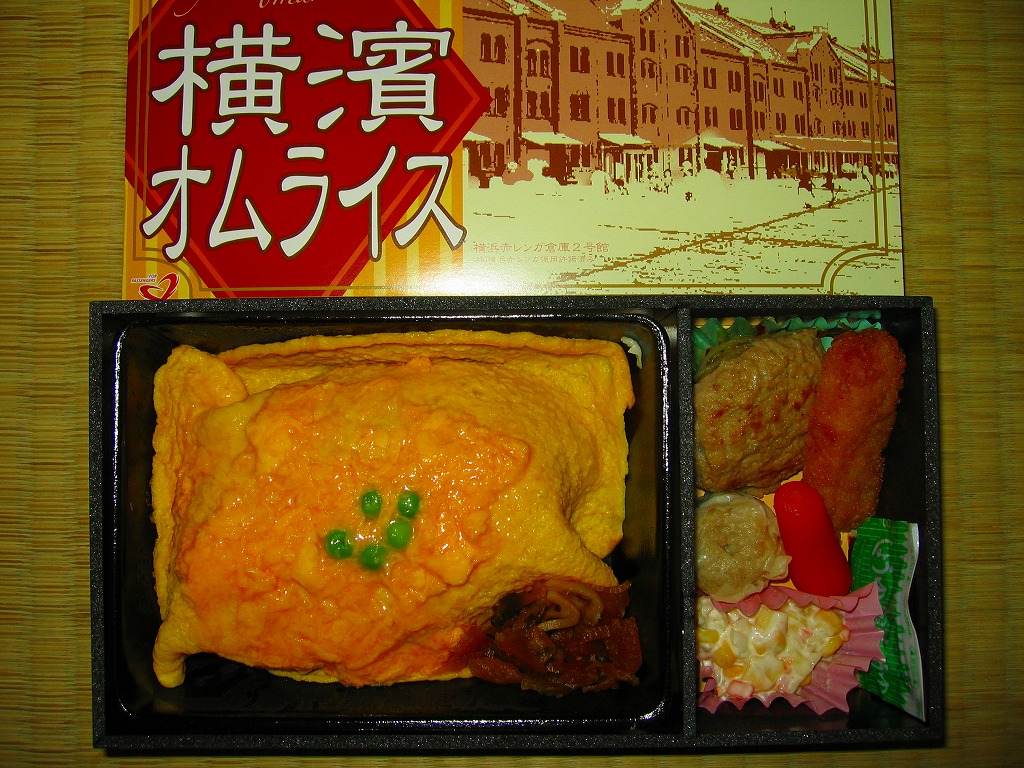 新横浜駅限定商品として、2006(平成18)年の秋に発売。黒い長方形の容器にラップをかけて、ソースと割りばしとスプーンを置いて、横浜の観光名所である赤レンガ倉庫を描いた紙ぶたをして、ラップでまるごと包む。中身は半熟卵のオムライスにハンバーグ、ポテトフライ、焼売、ニンジン、コールスローとごぼうサラダ。後に東海道新幹線の東京駅や品川駅でも売り始めた。価格は2014年の購入時で750円、2015年時点で770円。