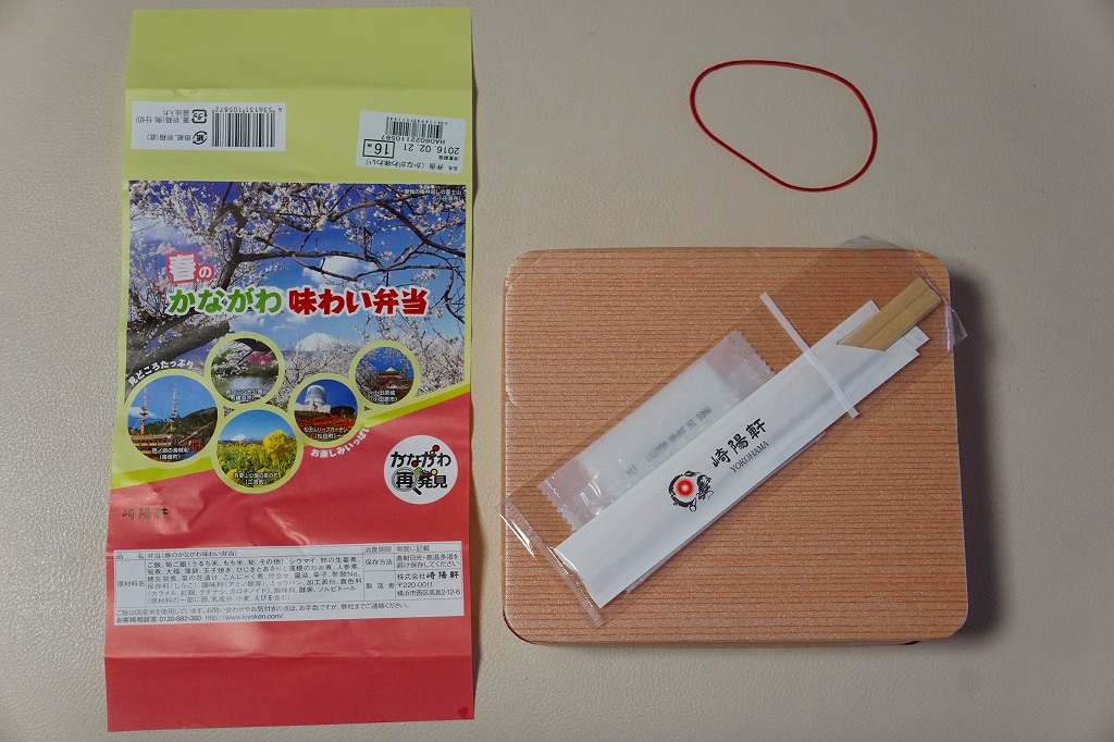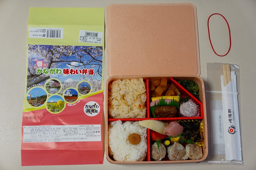 横浜駅弁「かながわ味わい弁当」の2016(平成28)年の春版で、やはり神奈川県の「かながわ再発見キャンペーン」とのタイアップ企画として、前年より半月間長い2016年2月1日から4月15日まで販売。掛紙の風景写真には、春の桜と富士と神奈川県内の各種イベントが使われる。中身は今回も、小田原産梅干の日の丸御飯、タケノコ御飯、三崎産マグロ生姜煮、三浦産芽ひじきとアサリと薩摩揚の炒め煮、小田原蒲鉾、大福、菜の花漬、昔ながらのシウマイ3個などと、ほとんど同じ。