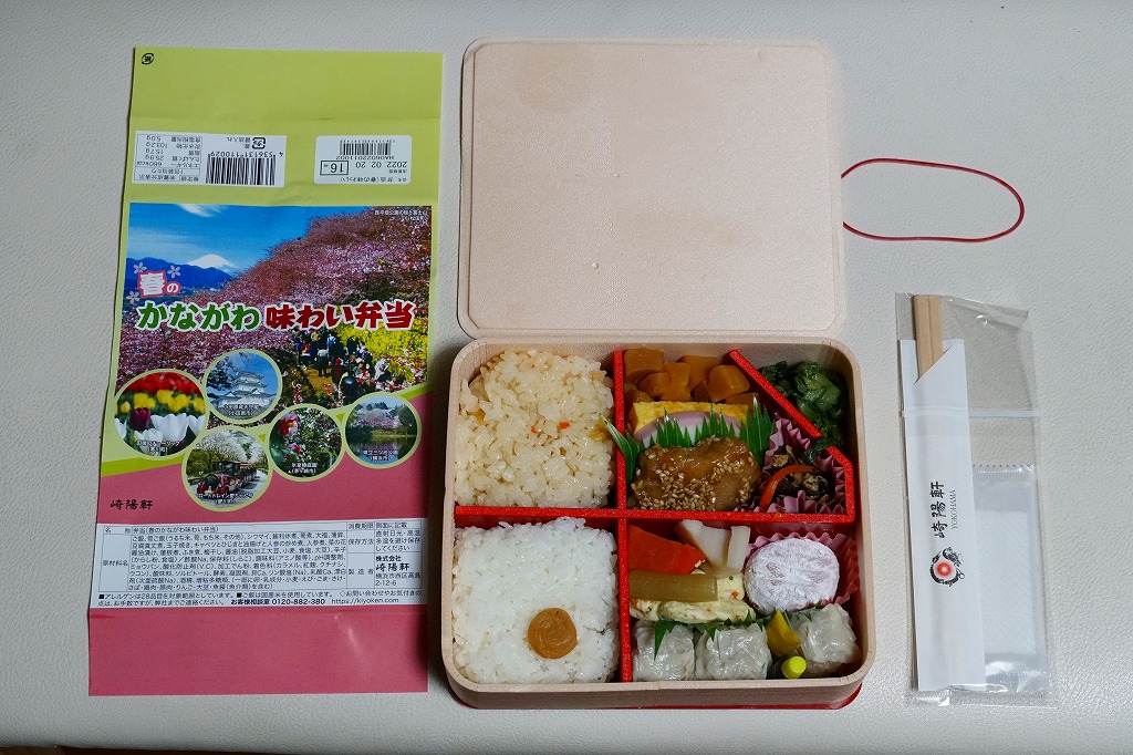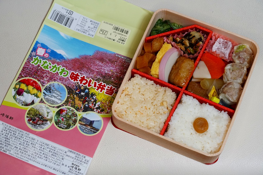 横浜駅弁「かながわ味わい弁当」で10シーズン目の「春」版で、2023(令和5)年2月1日から4月15日までの販売で、やはり神奈川県とのタイアップ企画。掛紙の内容は前年と同じで、写真もまったく同じ。価格は50円アップの1,030円。