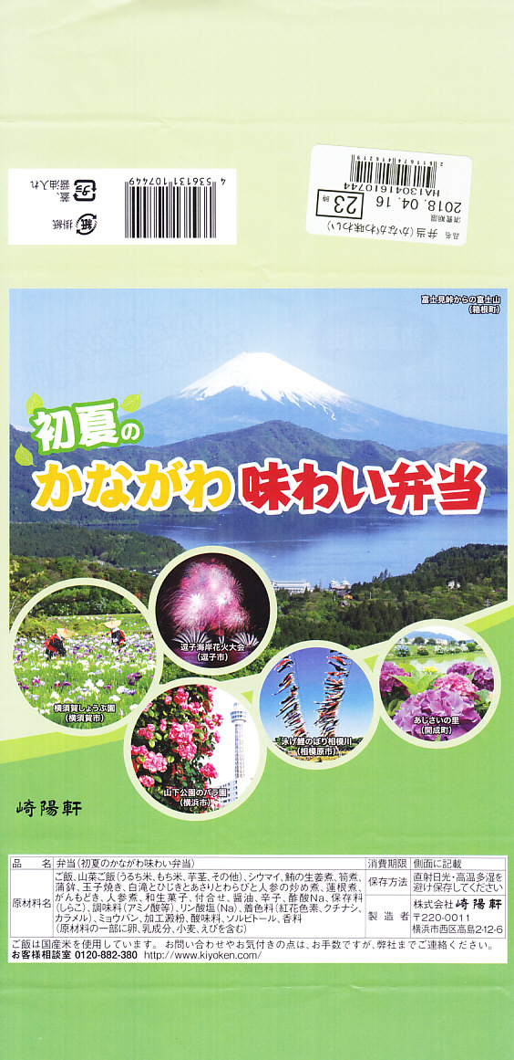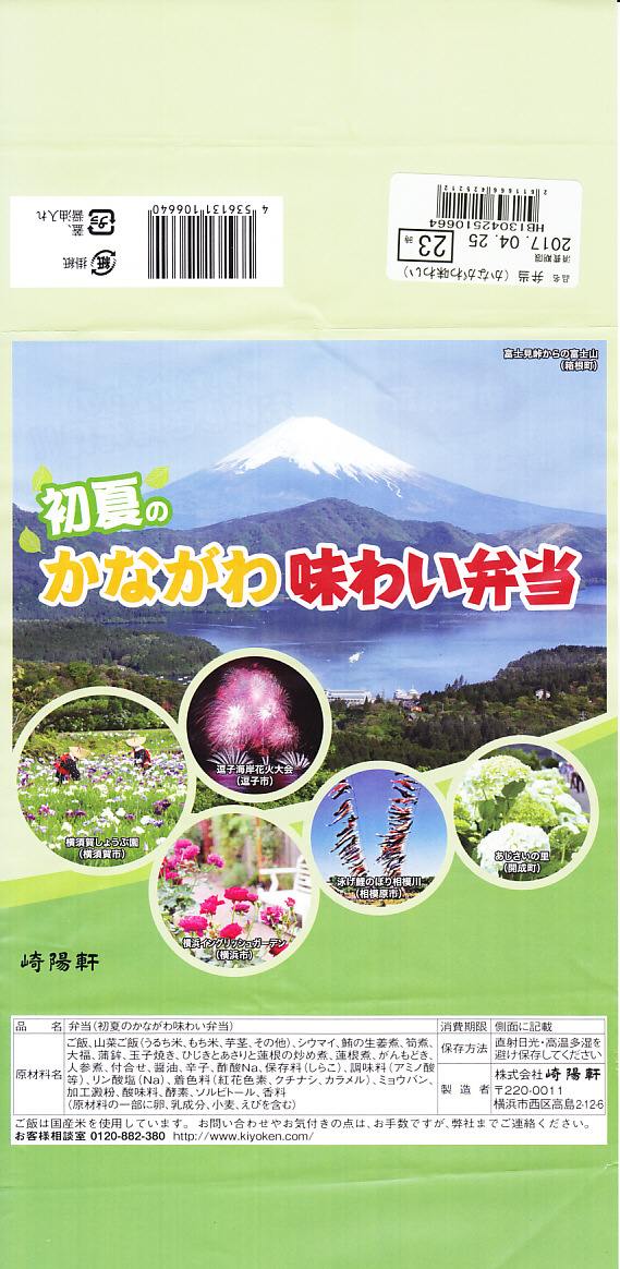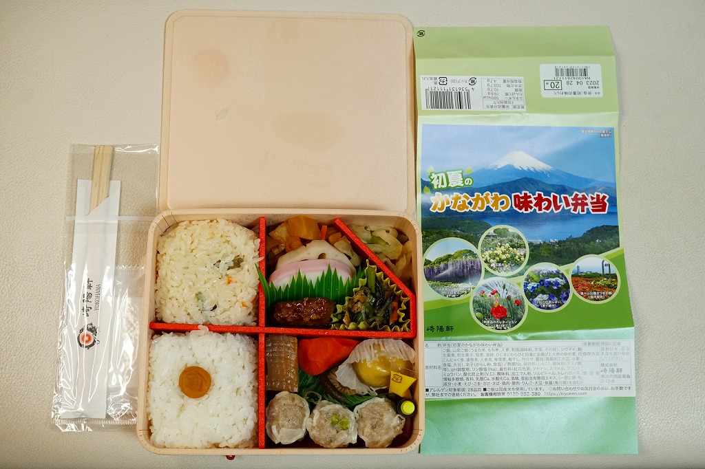 2008(平成20)年に発売された「かながわ味わい弁当」の、2016(平成28)年から出ている「初夏」版の8シーズン目で、2023(令和5)年4月16日から6月15日までの販売で、やはり神奈川県とのタイアップ企画。初夏版の発売当時から変わらない形の、初夏の風景でできている掛紙は、3年連続で据え置かれた。