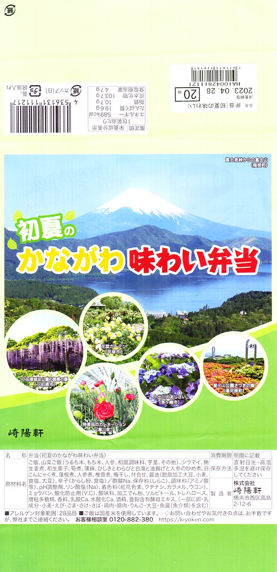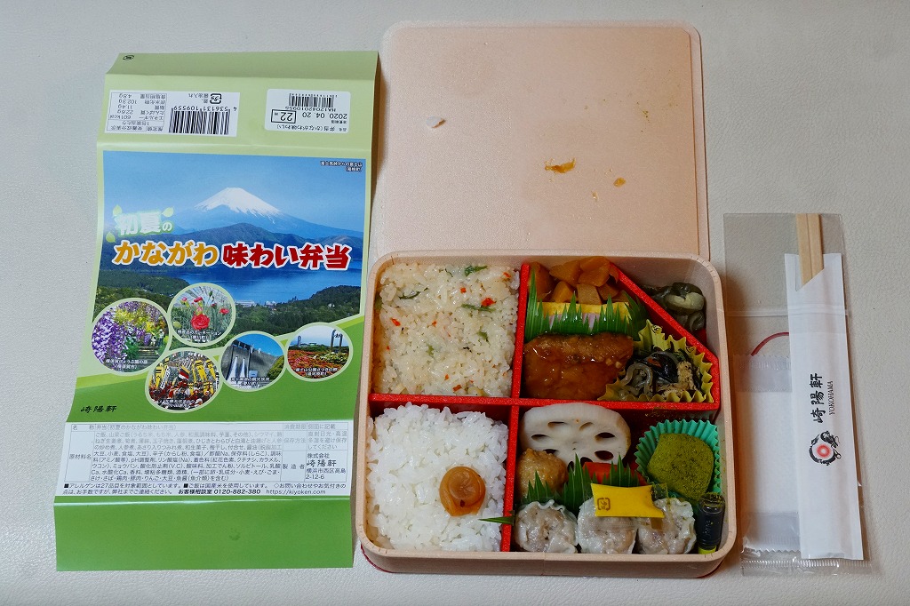 2008(平成20)年に発売された「かながわ味わい弁当」の、2016(平成28)年から出ている「初夏」版の5シーズン目で、2020(令和2)年4月16日から6月15日までの販売で、やはり神奈川県とのタイアップ企画。初夏版の発売当時から変わらない形の、初夏の風景でできている掛紙には、特産品のカーネーション(寒川町)と北條五代まつり(小田原市)が初登場。