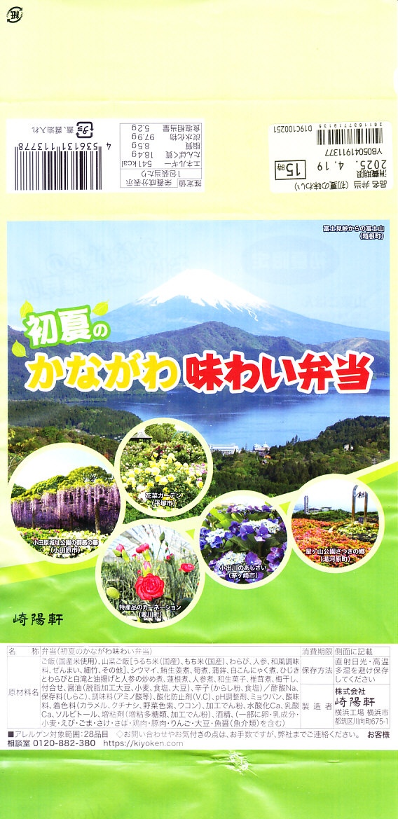 2008(平成20)年に発売された「かながわ味わい弁当」の、2016(平成28)年から出ている「初夏」版の10シーズン目で、2025(令和7)年4月16日から6月15日までの販売で、やはり神奈川県とのタイアップ企画。初夏版の発売当時から変わらない形の、初夏の風景でできている掛紙は、5年連続で据え置かれた。