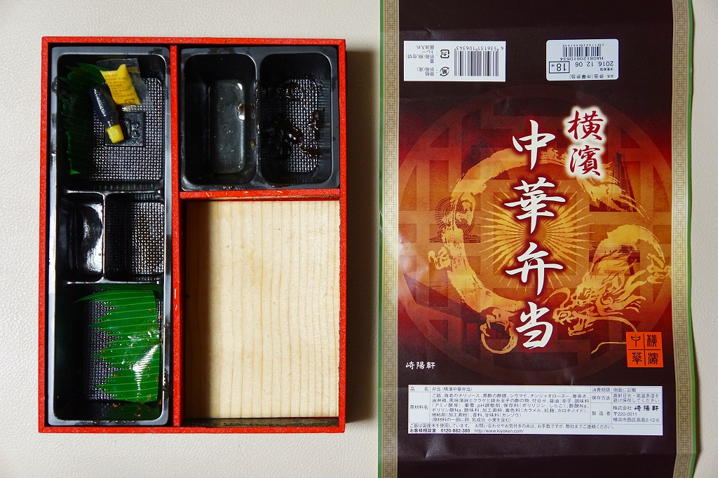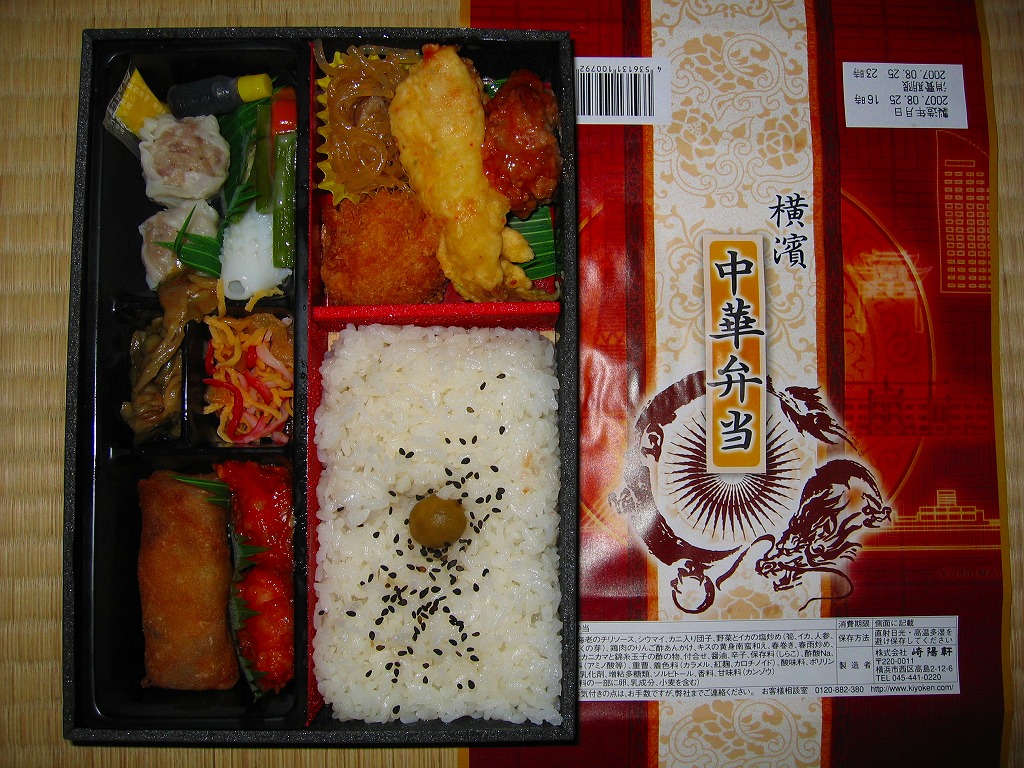 従前の横浜駅弁「横濱中華弁当」を、2008(平成20)年8月1日にリニューアル。容器と掛紙は従前と同じものを使う。中身は白御飯に鶏黒酢風味、エビチリ、肉野菜炒め、エビカニ団子、春巻き、イカの玉子揚げ、クラゲとカニカマと錦糸卵の酢の物、シウマイ1個など。雰囲気は変わっていないが、中身はかなり変わった。崎陽軒の駅弁という点では、シウマイが2個から1個に減ったのに値上げされたことが先に気になったが、中華駅弁の老舗であり最高峰の実力は変わらない。価格は2010年の購入時で1,000円、2010年9月1日の値下げで990円、2014年4月の消費税率改定で1,020円。2014年8月に上記へリニューアル。