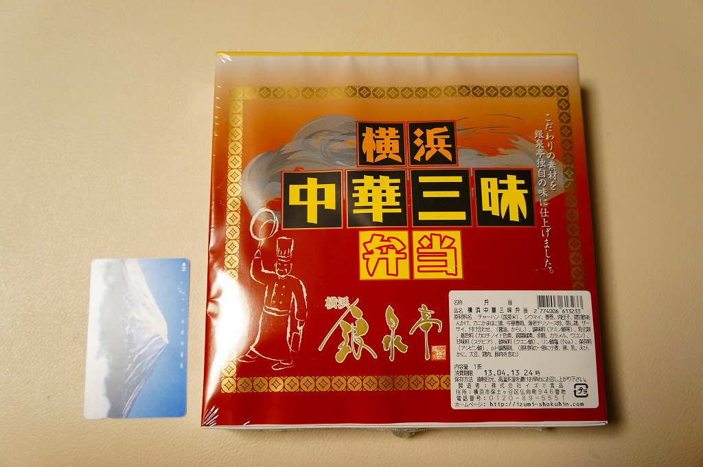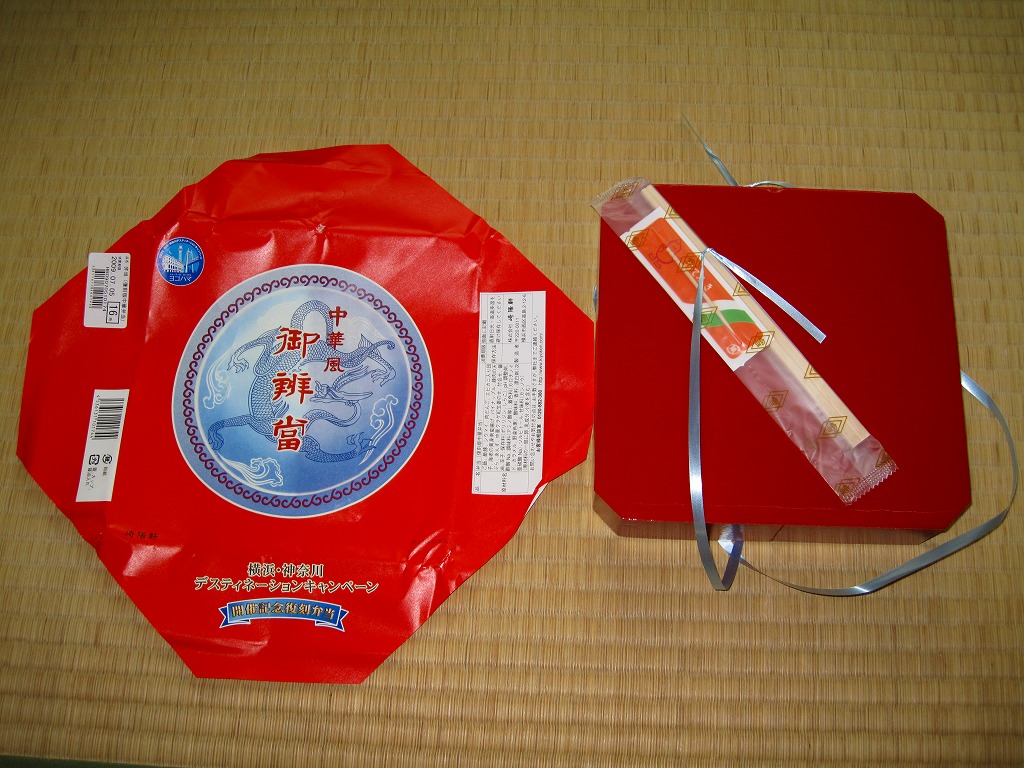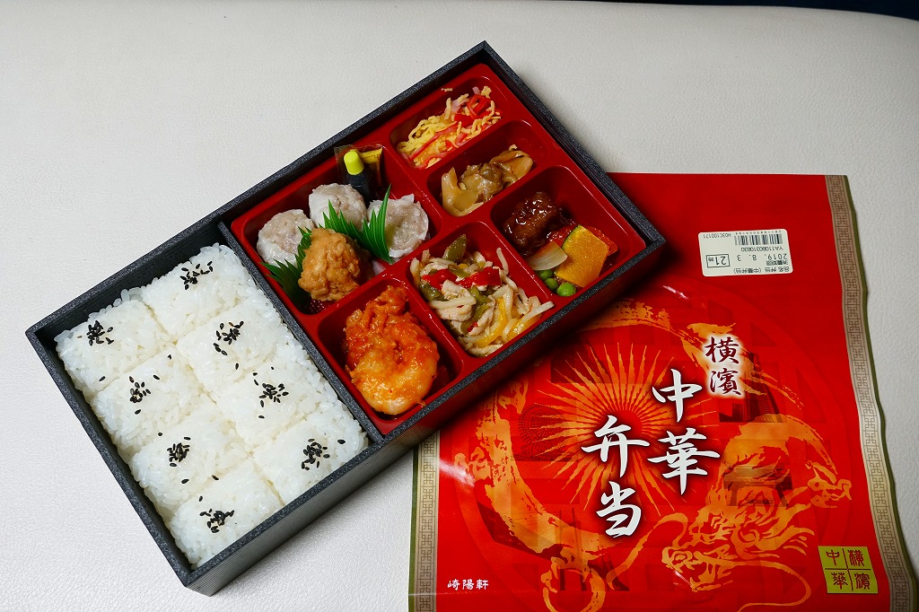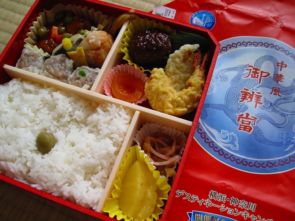 従前の横浜駅弁「横濱中華弁当」を、2005(平成17)年4月15日にリニューアル。黒いふた付き容器に中華風の赤い掛紙を巻いてゴムで留める。中身は胡麻振り御飯に海老マヨネーズにかじきまぐろ中華揚や五目XO醤炒めやザーサイなどにシウマイ3個。以前と比較して見栄えが向上するとともに奇抜さが取れ、より安心して買える商品になったと思う。2006年8月に上記商品へリニューアル。