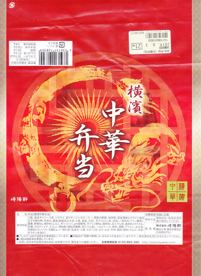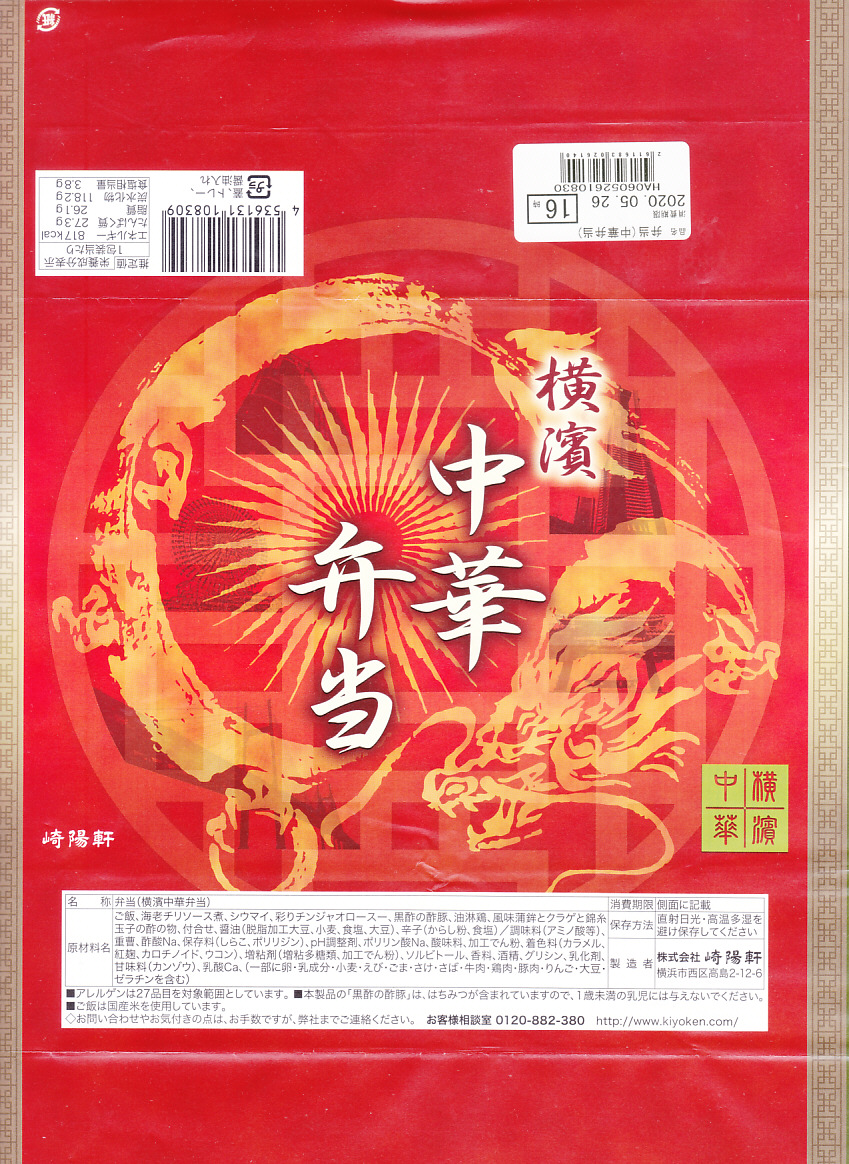 2000(平成12)年12月に発売。現在のものは2019(令和元)年7月のリニューアル。横浜駅の中華駅弁の最高峰であり、日本の中華駅弁の最高峰でもあると思う。赤く華やかな絵柄の掛紙に龍が舞う。中身は俵飯に海老チリ、酢豚、豚肉と野菜の炒め物チンジャオロース、カニカマやクラゲなどの酢の物、鶏唐揚でなく油淋鶏(ユーリンチー)とシウマイ3個。常温で食べるのに本格中華の香りがする、幕の内タイプの駅弁。価格は2019年のリニューアル時で1,080円、2022年10月から1,120円、2023年10月から1,160円。鳥インフルエンザの流行による鶏卵不足により、2023年5月8日から酢の物の錦糸卵がなくなっている。2025年2月から1,280円、2026年2月から1,390円。