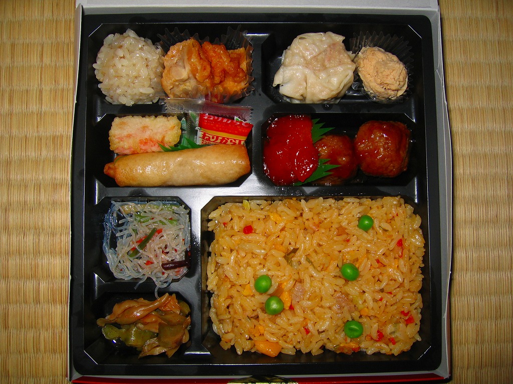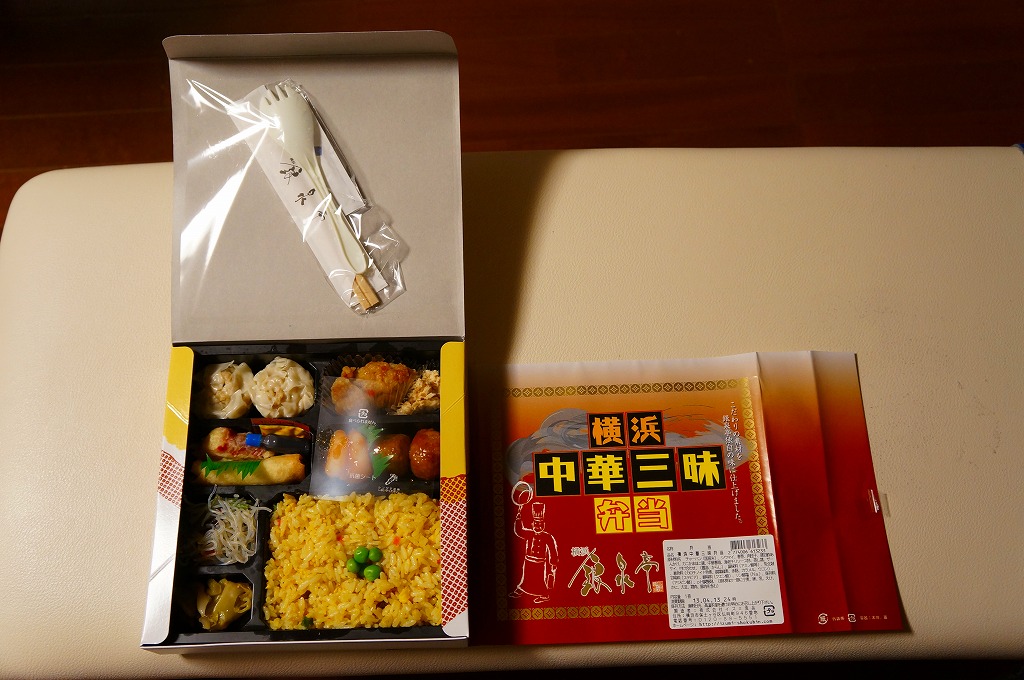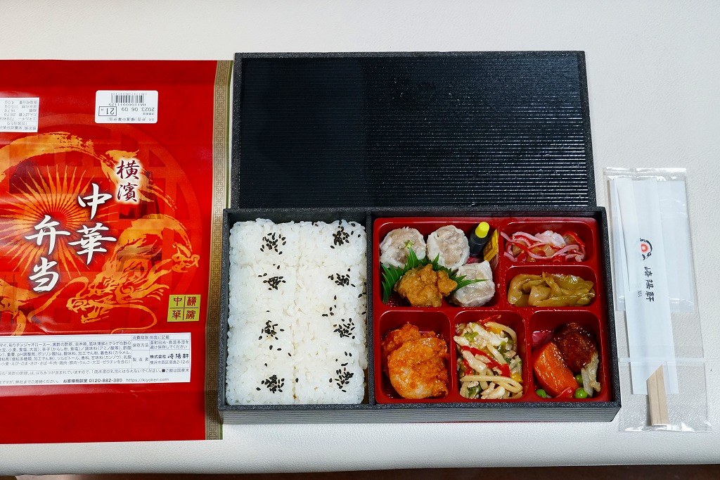 正方形の大きな専用紙箱を使用、トレーに入った中身は、炒飯、肉団子、焼売各種、春巻、春雨、ザーサイなどで商品名どおり。見栄えは特に美しいわけではないが、箸でつかみにくいほどパラパラの炒飯に10種類もの中華おかずは、食べ甲斐があった。調製元の公式サイトによると、JRCPで東京や新横浜、膳まいで東京、横浜、鶴見の各駅に進出したようだが、アイテム数を見ると軸足は羽田の空弁に置かれている模様。