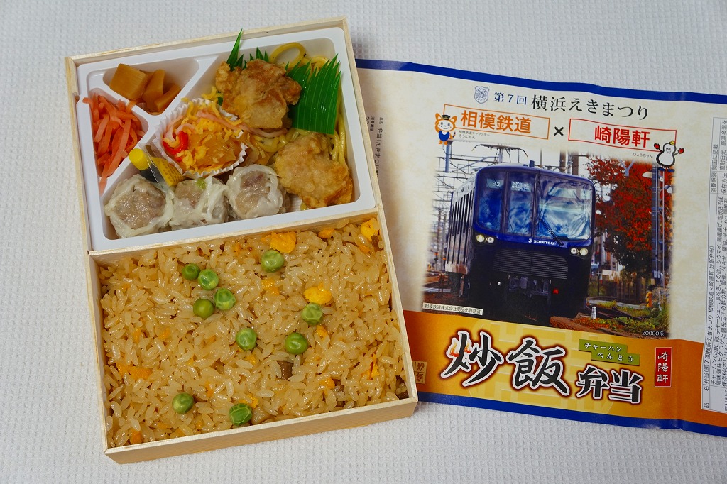2019(令和元)年10月5日の調製である、横浜駅弁の掛紙。10月1日から14日までの「第8回横浜えきまつり」の開催に合わせて、横浜駅に乗り入れる鉄道会社6社それぞれの電車を掛紙にしたバージョンの相模鉄道版で、期間中の土休日に横浜駅エリアで販売。