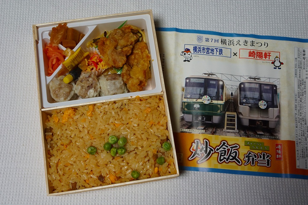 2019(令和元)年10月5日の調製である、横浜駅弁の掛紙。10月1日から14日までの「第8回横浜えきまつり」の開催に合わせて、横浜駅に乗り入れる鉄道会社6社それぞれの電車を掛紙にしたバージョンの横浜市営地下鉄版で、期間中の土休日に横浜駅エリアで販売。