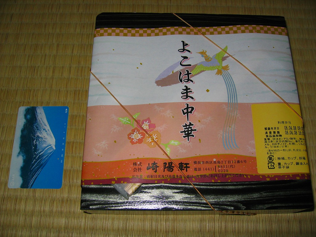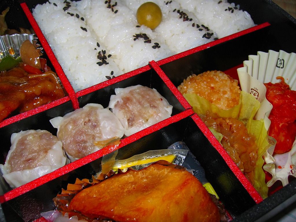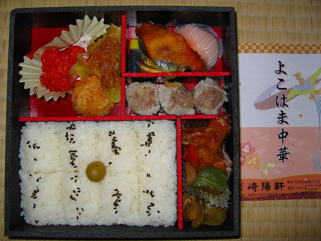 2006(平成18)年4月8日と9日に東京駅で実施の駅弁の日記念駅弁大会で販売された、崎陽軒の駅弁の日記念弁当。今年は商品名のとおり中華弁当となり、俵飯やシウマイ3個に加えて、エビチリや海老焼売や豚肉炒めやザーサイなどが入る。