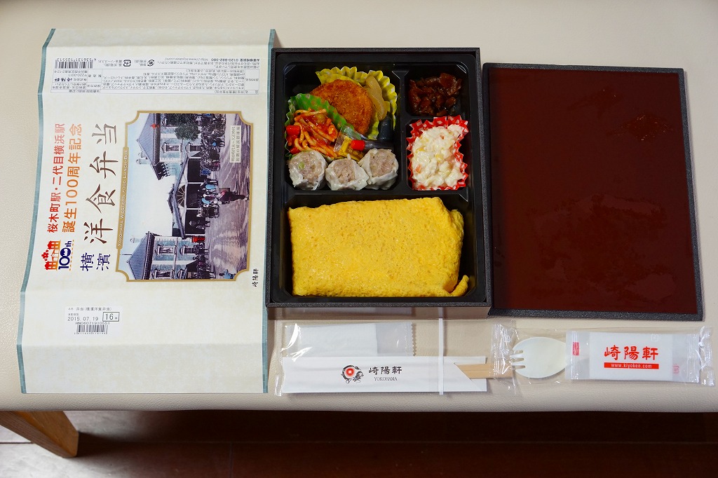 桜木町駅と二代目横浜駅の誕生100周年を記念するJR東日本横浜支社のイベントに伴い、2015(平成27)年7月18日から8月16日まで、桜木町駅や横浜駅やその周辺の崎陽軒売店で販売された記念駅弁。掛紙にはJRのイベントのロゴマークと、二代目の開業により桜木町へ改称された初代の横浜駅の写真が使われる。中身はオムレツライス、ポークカツレツ、昔ながらのシウマイ、ナポリタン、オニオンソテー、コールスローサラダ、福神漬けで、100年前の当時の食文化に想いを馳せたり、海外と日本の文化が融合する街である横浜を感じさせたのだという。
