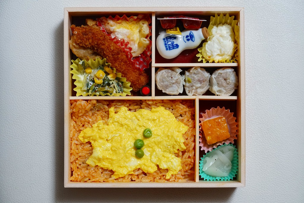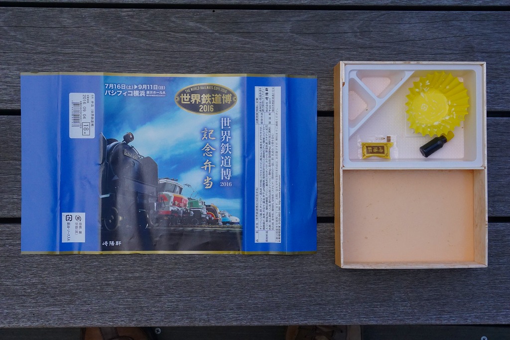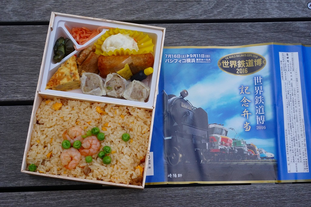 横浜市の展示ホール「パシフィコ横浜」で、2016年7月16日から9月11日まで開催された鉄道模型展示イベント「世界鉄道博2016」の会場で、会場限定のお弁当として横浜駅弁の崎陽軒が販売していたお弁当。横浜駅弁「炒飯弁当」と同じ容器に、イベントのポスターの絵柄を使う掛紙を巻く。