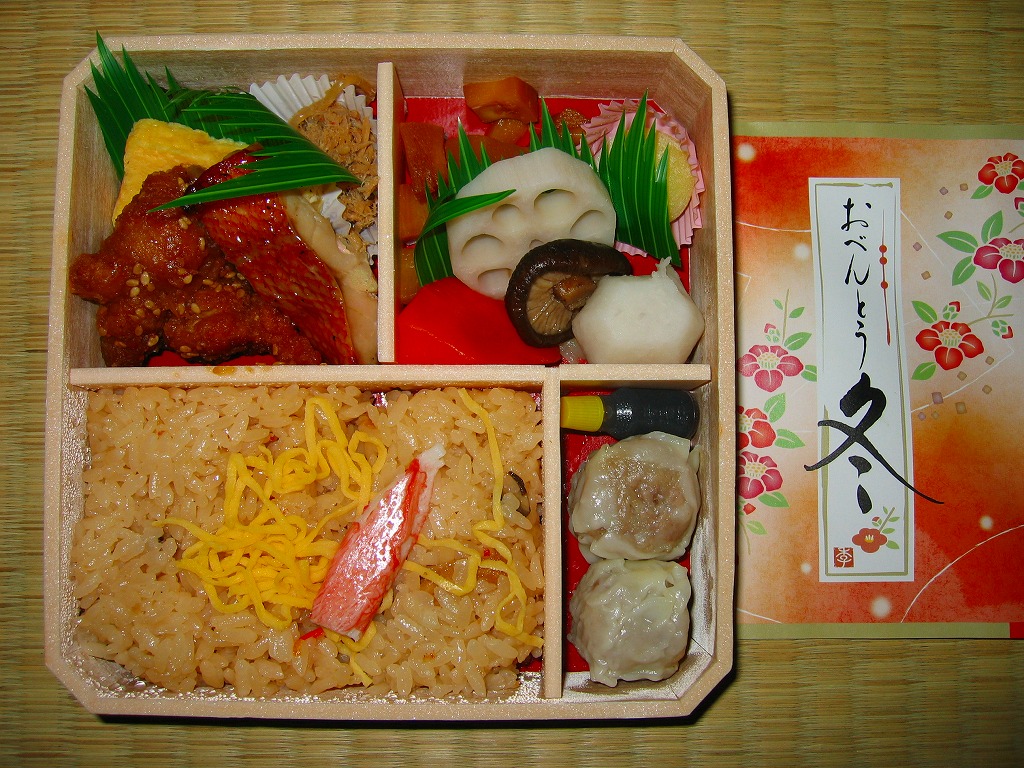 2003(平成15)年12月に初めて販売した、横浜駅の冬駅弁「おべんとう冬」の2010(平成22)年版で、12月1日から1月31日までの販売。今回の中身はカニ御飯にクロメヌケ照焼、ナガイモ磯辺揚、コンニャクの赤味噌煮、レンコンやニンジンなどの煮物、根菜とちくわの胡麻和え、玉子焼、野沢菜漬、シウマイ2個、黒ごま団子。カニの風味を探せなかった以外は、見たとおり内容通りの味。価格は2010年9月の全商品値下げを反映してか、前年より10円下がった。