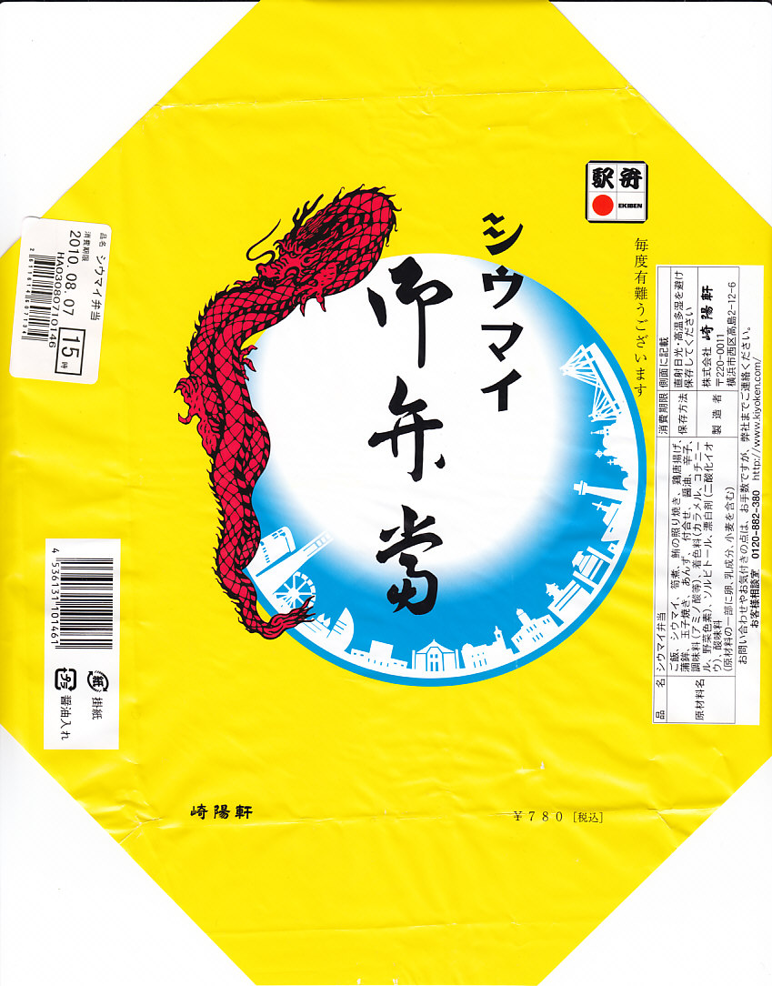 2010(平成22)年8月7日(土)に購入した、横浜駅弁シウマイ弁当の掛紙。上記の2009年12月のものと同じ、4代目掛紙の普段の姿。
