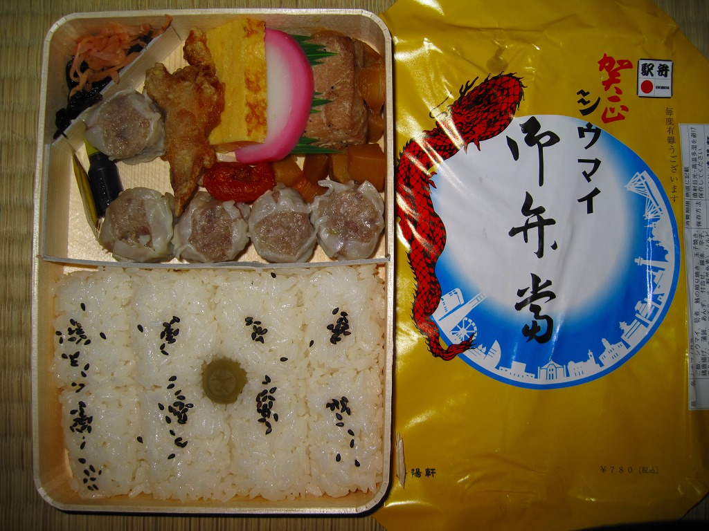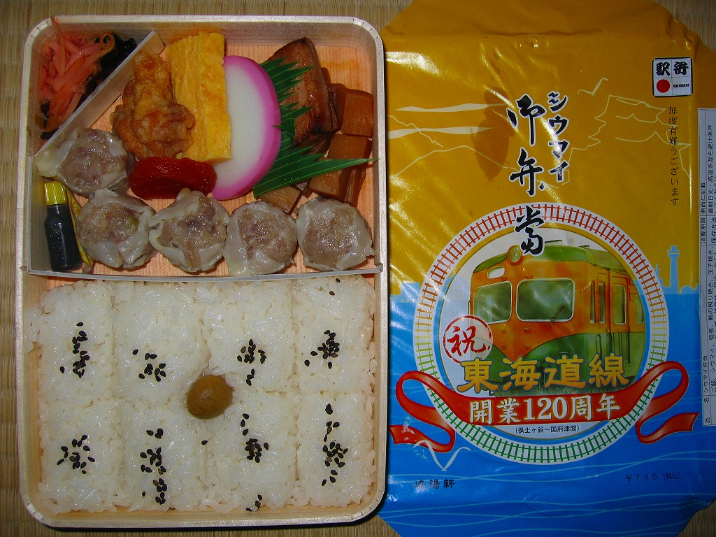 今回の購入日は、東日本大震災の6日後。震災の金曜日から土日を過ぎて月曜日になると、首都圏でも電力不足や物流の停滞により日常生活への影響が出てきて、この頃にはスーパーやコンビニからデパートや量販店まで、商店から食料がなくなっていた。しかし横浜駅の駅弁売店には、このシウマイ弁当がぞくぞく入荷。鉄道旅客への供食という役割から、緊急時の対応を鉄道当局と共に磨いてきた、駅弁屋の底力を見た気がした。
