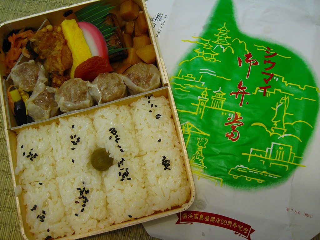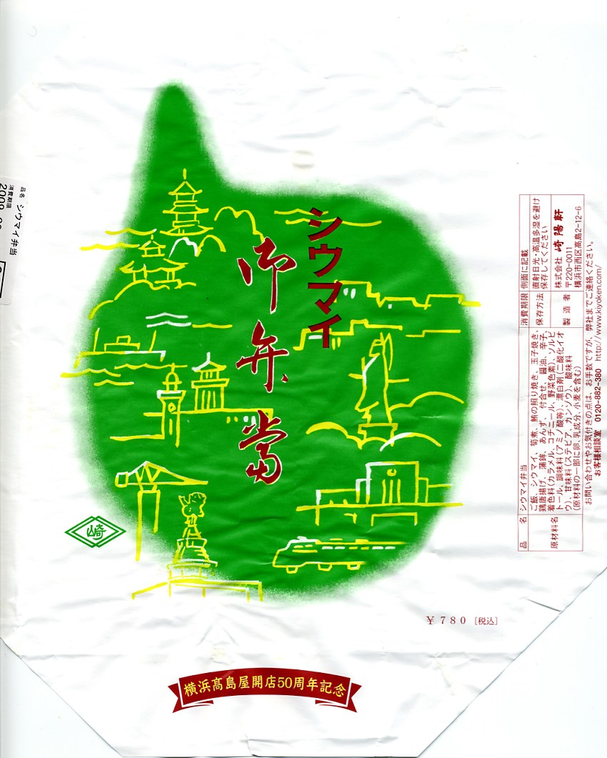 高島屋横浜店の開店50周年を記念して、2009年9月に販売した記念弁当。同店の地下1階の食品売り場には崎陽軒が出店しており、そこでひっそりと販売されていた。掛紙の絵柄は下部に「高島屋横浜店の開店50周年記念」と追記してある以外は、東京都内で復刻版シウマイ弁当として使われるものと同じで、横浜では初めて入手できた。中身は復刻版ではなく通常版と同じ。