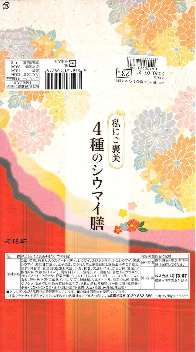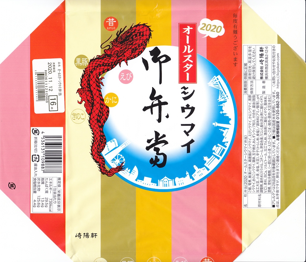 2020(令和2)年4月10日から19日まで、日本鉄道構内営業中央会が駅弁誕生135周年を記念して会員のうち21社が販売する、駅弁の原点であるおにぎりをメインとした記念弁当として、それと同じ容器と中身と価格にほぼ同じ掛紙を使う「おにぎりシウマイ御弁當」が、神奈川エリア20店舗と東京エリア3店舗で700個販売される予定であった。4月2日にそうプレスリリースされ、6日に「新型コロナウイルス感染予防の観点から、販売を延期」され、以後そのままになっている。コロナといえば、船内でコロナが蔓延し横浜港に留め置かれたダイヤモンド・プリンセス号へ、2020年2月12日に差し入れされたシウマイ弁当4,000個も、行方知れずになっている。