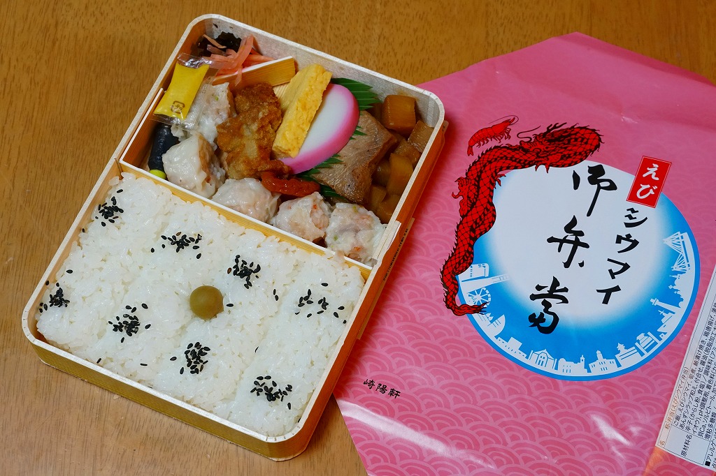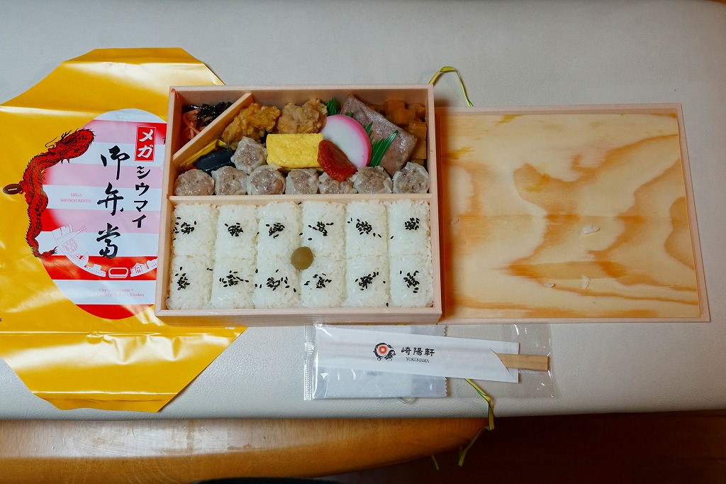 崎陽軒の横浜工場の弁当製造ラインの新設記念で、2017(平成29)年6月23日から7月22日まで、「メガシウマイ御弁當」とともに販売。その名のとおり、シウマイ弁当の高級版。
