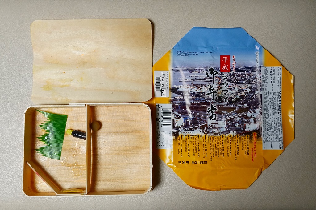 2019(平成31)年4月20日から30日まで販売。駅弁の名前のとおり、平成最後の11日間に売られた駅弁。掛紙には昭和64年の開催予定で1989(平成元)年の3月から10月まで横浜市内のみなとみらい21地区で開催された、横浜市制100周年と横浜港開港130周年を記念した地方博「横浜博覧会」の俯瞰写真を使い、平成時代の横浜の略年表を掲載した。