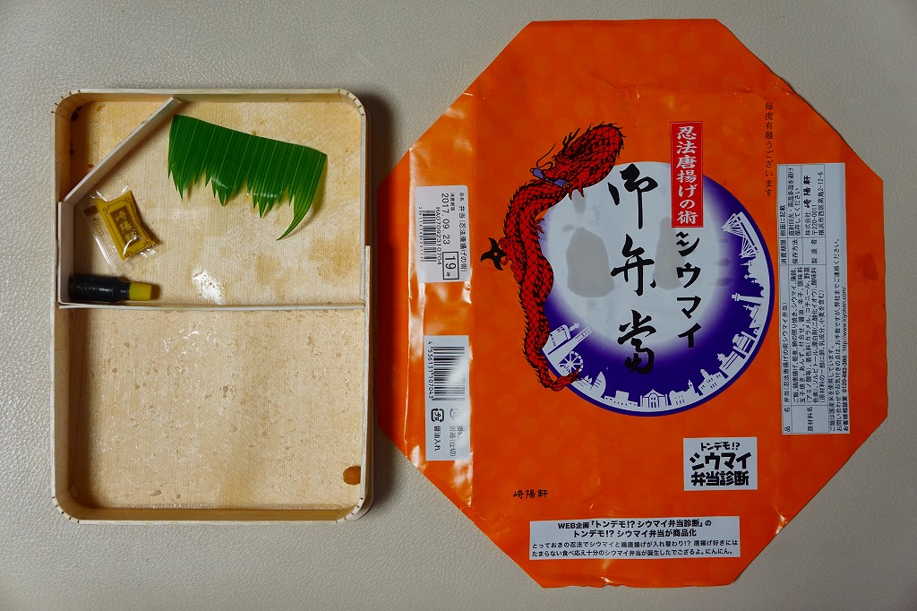 容器と価格は、通常版のシウマイ弁当と同じ。おかずのシウマイを5個から1個に減らし、鶏唐揚を1個から5個に増やした。少し色調を変えた掛紙では、龍が巻物をくわえて手裏剣を持ち、崎陽軒本社ビルに忍者が立つ。販売日の駅弁売店に朝から行列ができ、大変な話題と人気を集めた。