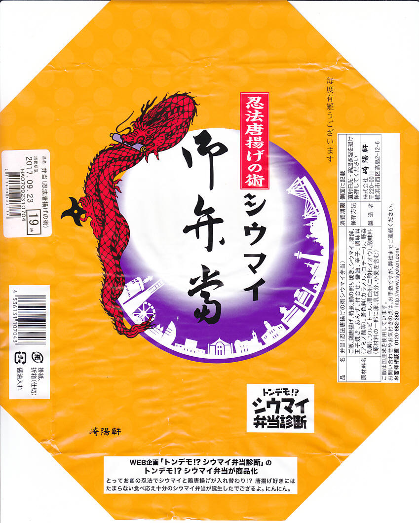 2017(平成29)年9月23・24日に横浜駅エリアで1,000個を販売。前月に崎陽軒公式サイト上で実施したアンケート企画「トンデモ!?シウマイ弁当」の結果に基づき、これと「忍法唐揚げの術シウマイ弁当」を、2日間限定で商品化した。
