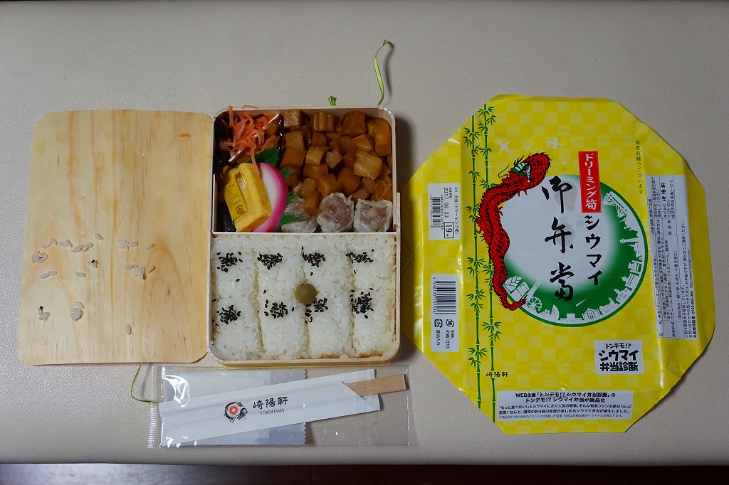 崎陽軒の横浜工場の弁当製造ラインの新設記念で、2017(平成29)年6月23日から7月22日まで、「MINIプレミアムシウマイ弁当」とともに販売。その名のとおり、シウマイ弁当の増量版。