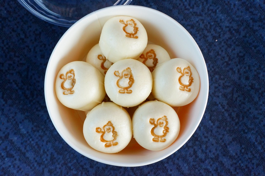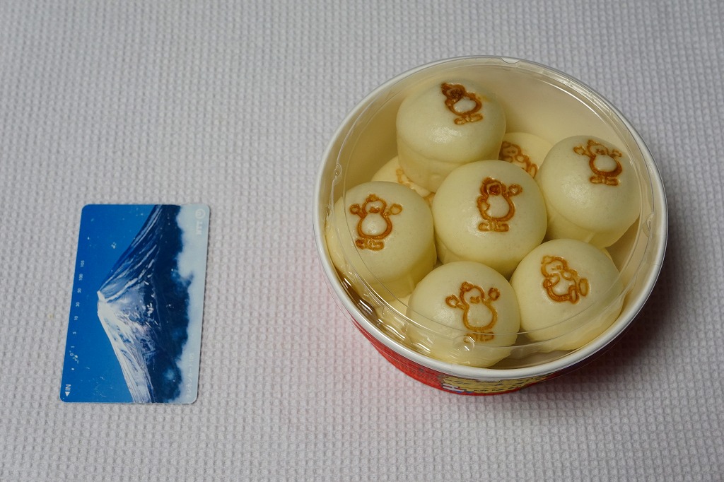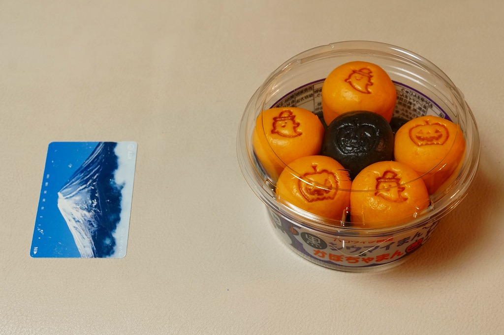 2018(平成30)年10月1日に発売、30日まで販売。翌2019(令和元)年も10月4日から31日まで販売された、ハロウィン限定シウマイまん。通常版とだいたい同じ大きさを持つ透明なプラ製カップに、黒色と橙色のプチ饅頭が5個ずつ。黒はシウマイまんで、橙はそのシウマイをカボチャ餡に替えたもの。お菓子でもおかずでもないこの味がどう評価されたか気になる。価格は2018年の発売時で550円、2022年は560円、2023年から570円、2025年は600円。