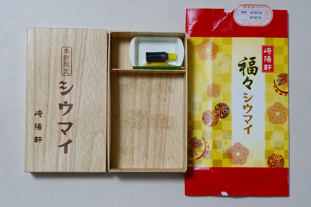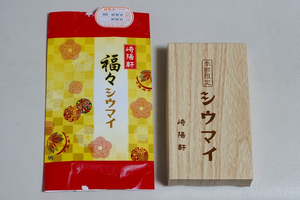 2020(令和2)年9月3日に購入した、横浜駅弁の紙箱。この年も秋の特製シウマイ「きのこシウマイ」の、上の常温タイプとこの「おいしさ長もちシリーズ」の両方を、2020(令和2)年9月1日から11月30日まで併売。写真は消えてしまったが、折箱も包装紙も中身も風味も、前年とまったく同じで、実質的に8年連続で据え置かれた。