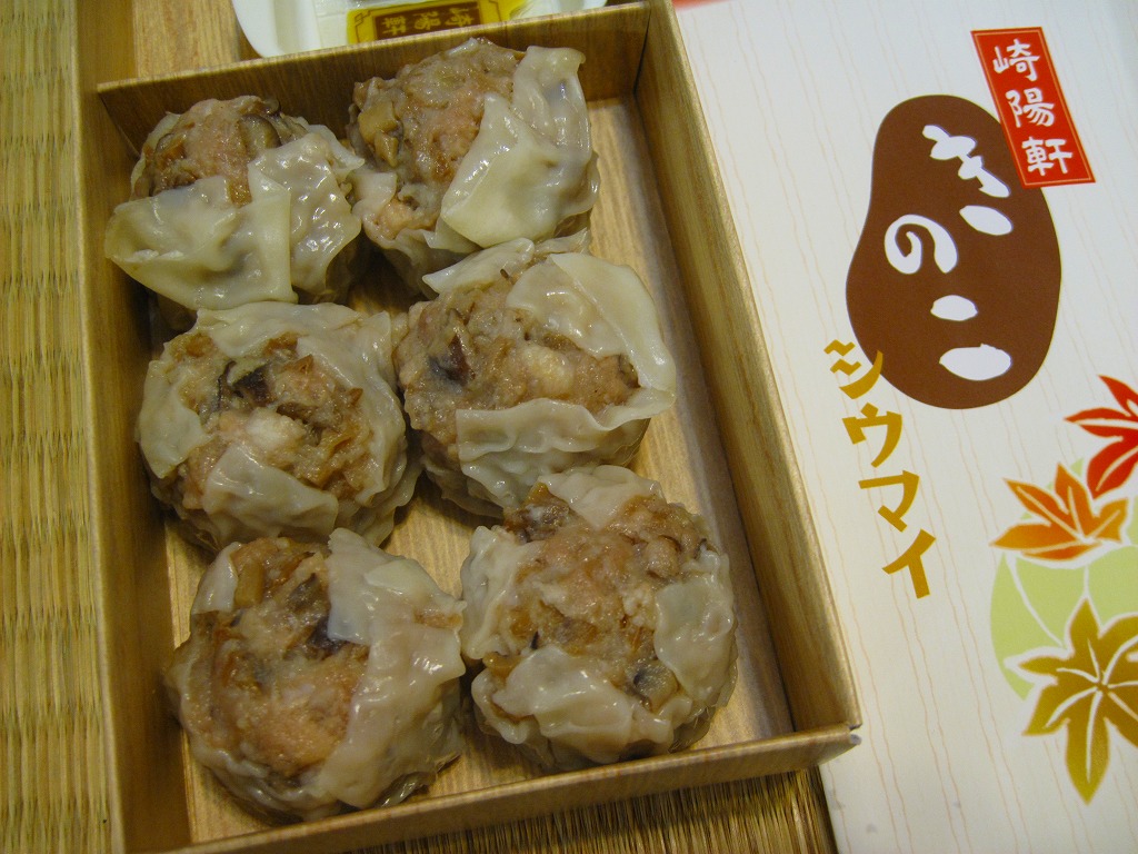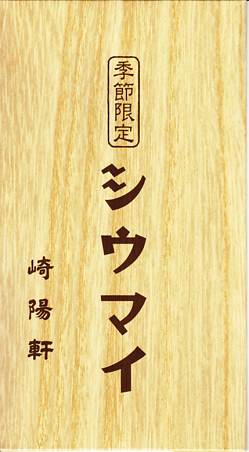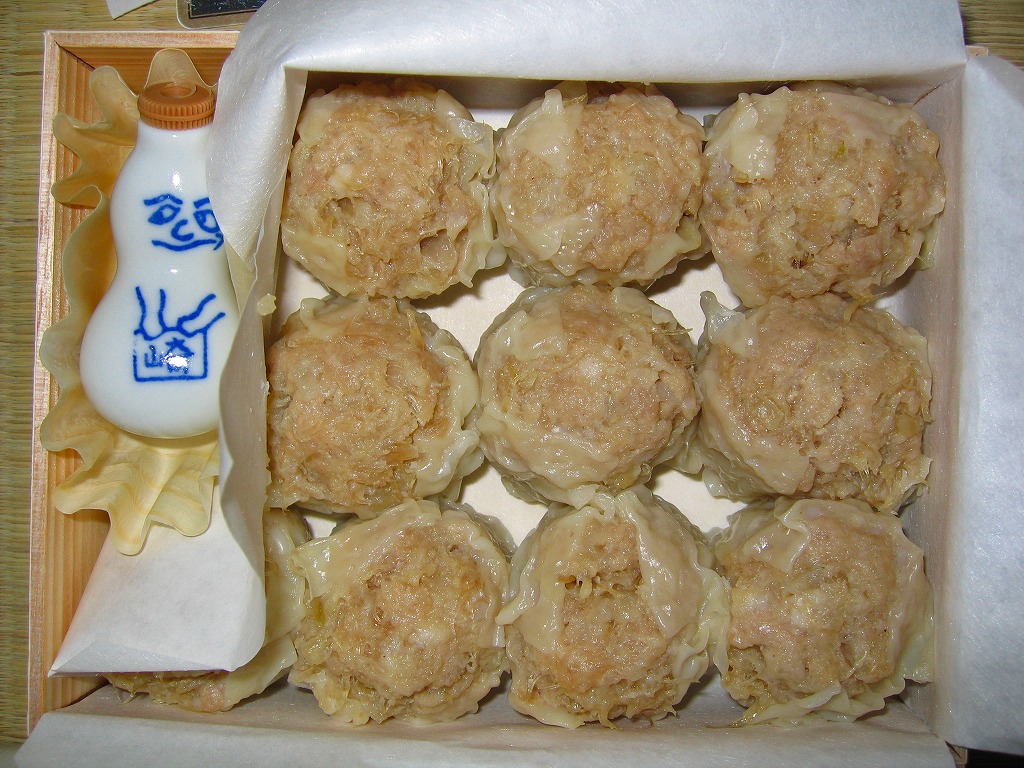2011(平成23)年9月1日から11月30日まで販売された、秋の特製シウマイ。包装紙は白から茶色に変わり、今年の中身はマイタケ、シイタケ、エリンギ、ブナシメジで作ったという。確かにたっぷりキノコ味であるものの、歯応えがなく風味も平板。しかし今回初めて添付したラー油色な酸っぱい醤油だれを使うと、キノコの味が元気ににょきにょき生えてきた。そういう商品設計をしているのだろうが、これには驚いた。