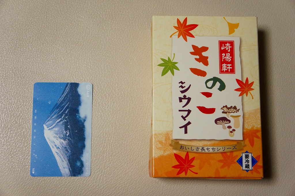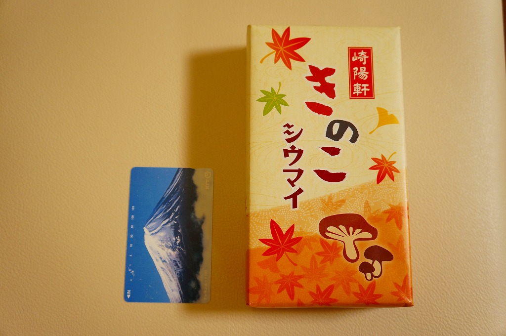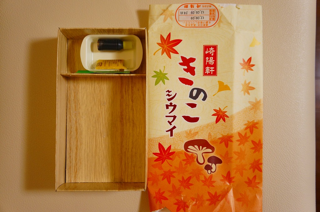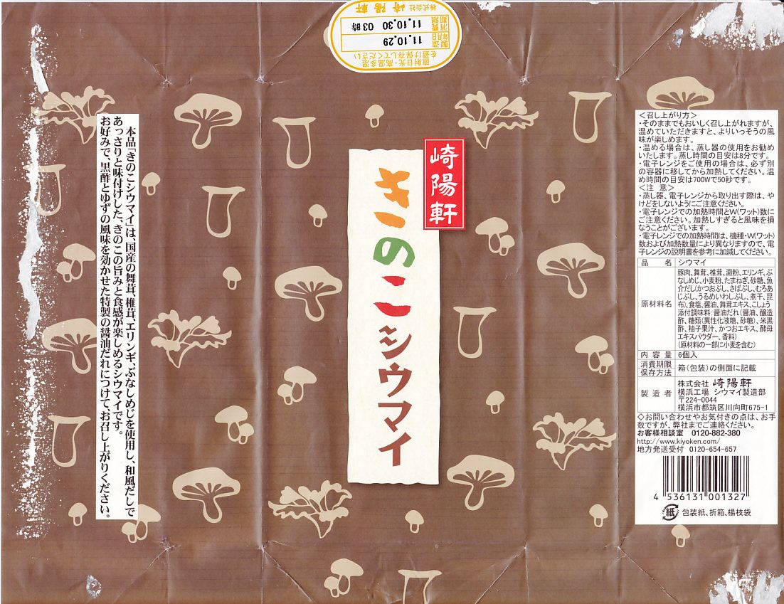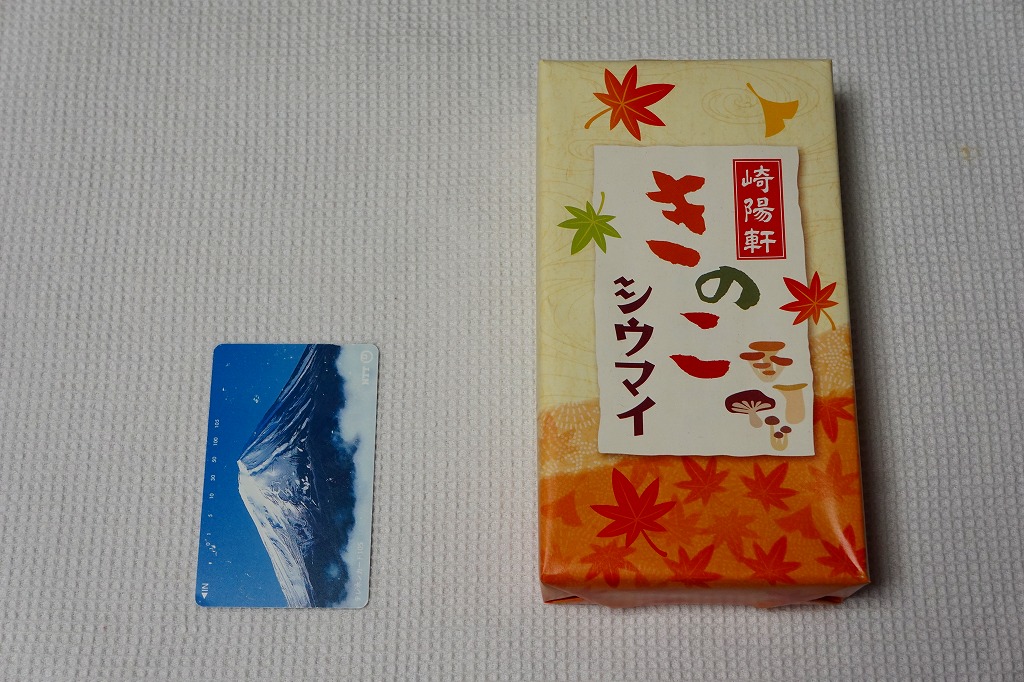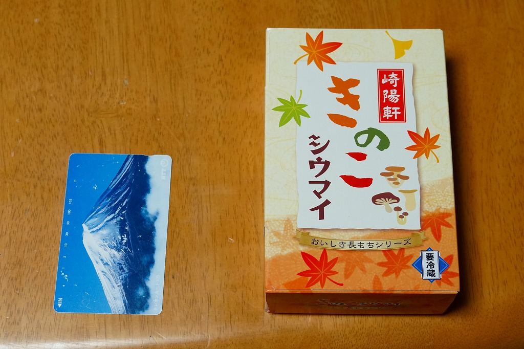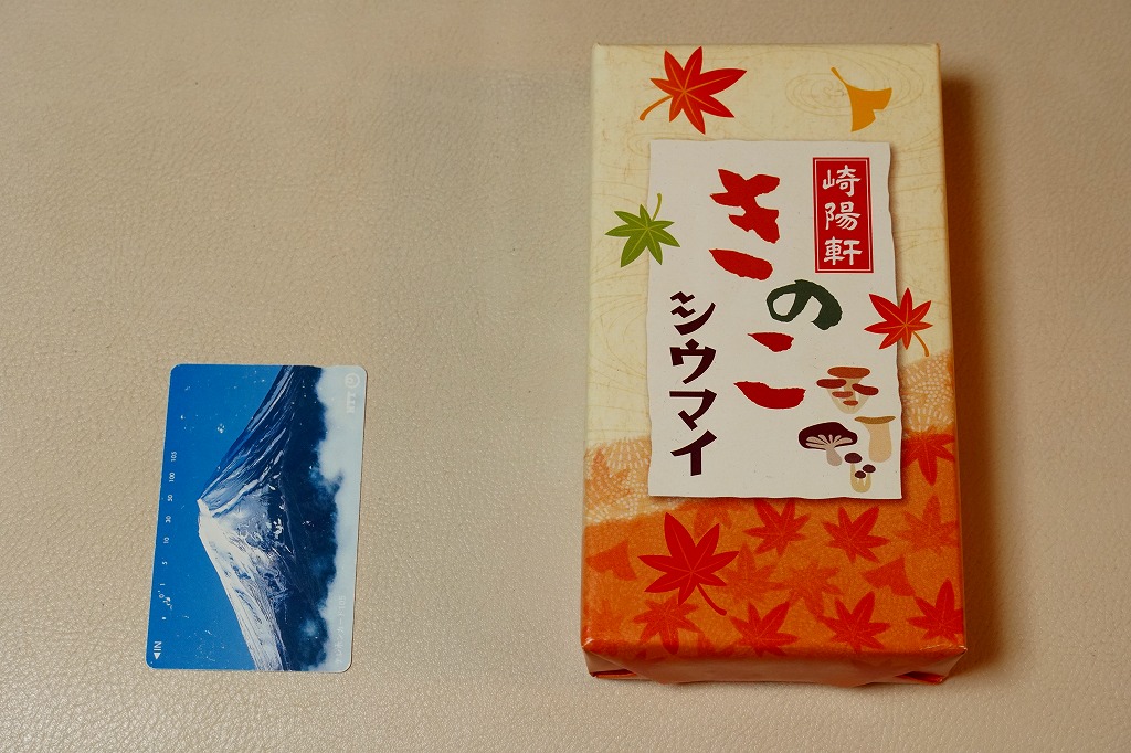2003(平成15)年に発売された、季節の特製シウマイの秋版。今回も「きのこシウマイ」の、この常温タイプと「おいしさ長もちシリーズ」の両方を、2023(令和5)年9月1日から11月30日まで併売。折箱も包装紙も中身も風味も前年と同じで、実質的に11年連続で据え置かれた。しいたけ、ぶなしめじ、エリンギ、舞茸、ヒラタケと豚肉を混ぜ合わせた、中華の点心としては通常サイズ、崎陽軒の横浜駅弁としては大きいサイズのシウマイを、木目柄の紙箱に6個収め、醤油と辛子を添える。味も11年連続で据え置きか。価格は30円上がった。