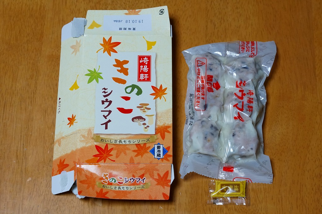 2003(平成15)年に発売された、季節の特製シウマイの秋版。今回も「きのこシウマイ」の、常温タイプとこの「おいしさ長もちシリーズ」の両方を、2024(令和6)年9月1日から11月30日まで併売。折箱も包装紙も中身も風味も前年と同じで、実質的に12年連続で据え置かれた。しいたけ、ぶなしめじ、エリンギ、舞茸、ヒラタケと豚肉を混ぜ合わせた、中華の点心としては通常サイズ、崎陽軒の横浜駅弁としては大きいサイズのシウマイを、樹脂の袋で押し潰して箱に詰め、辛子を添える。味も12年連続で据え置きか。価格は20円上がった。