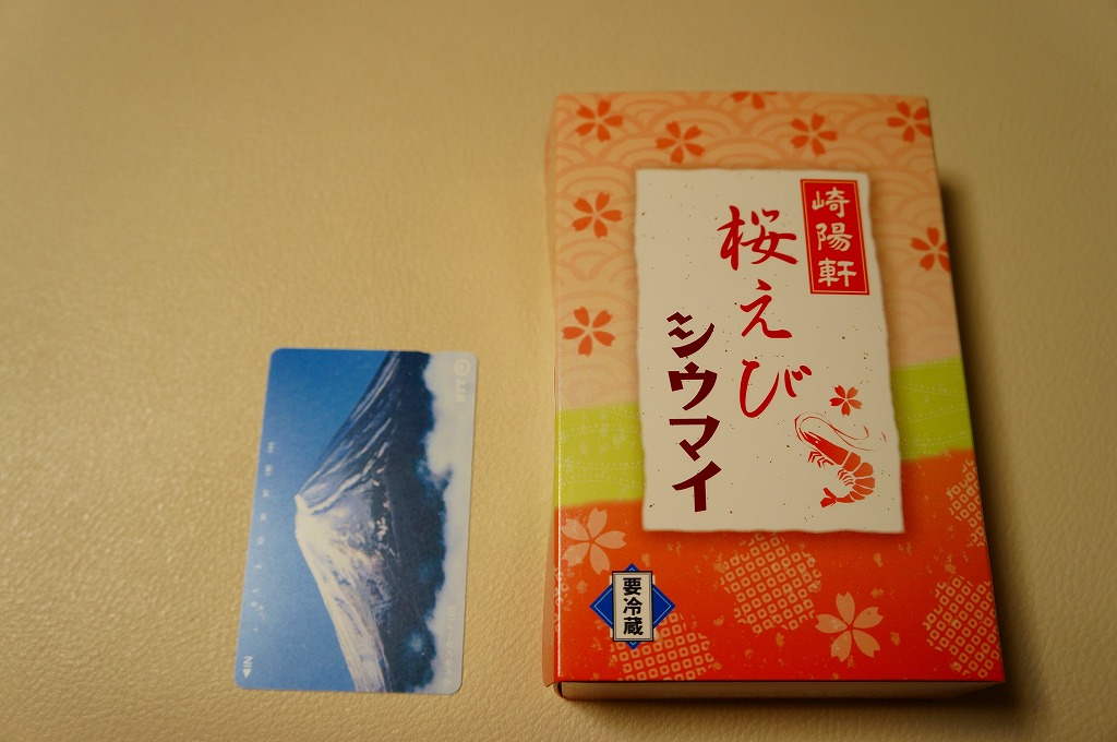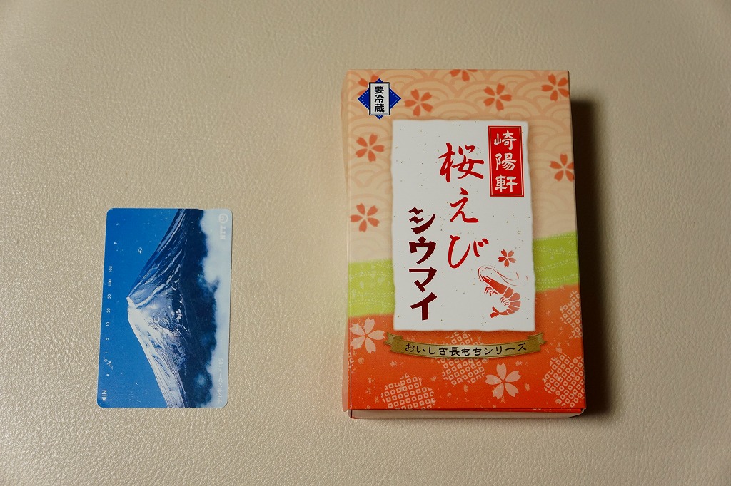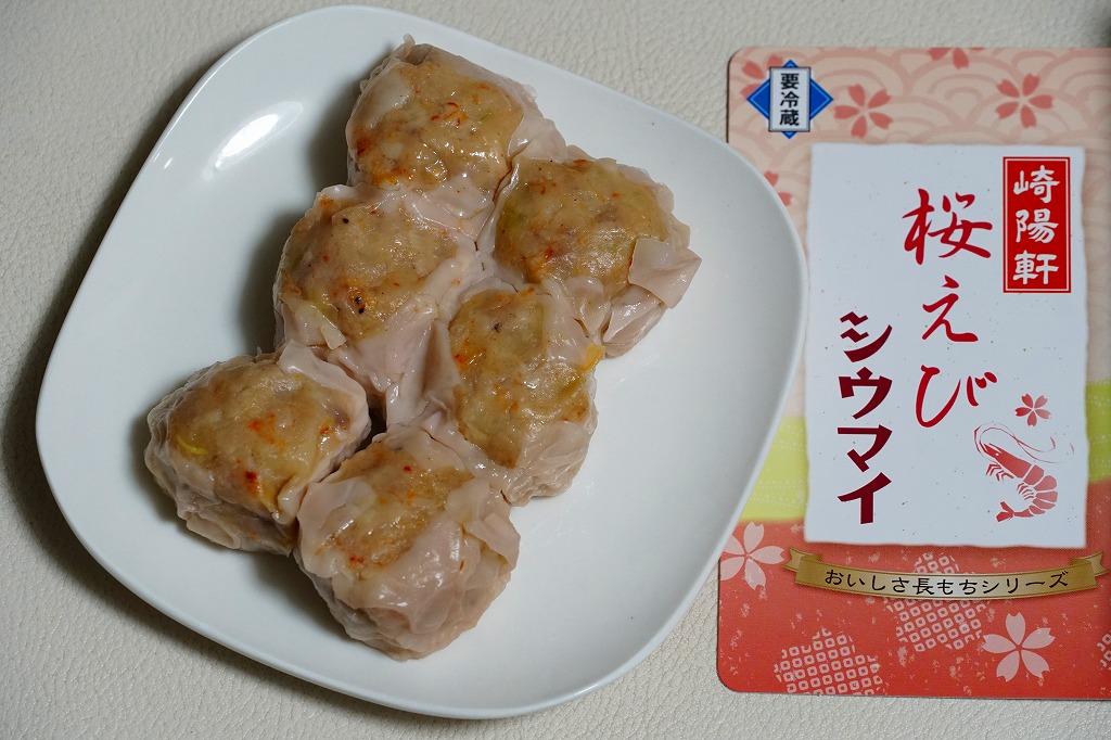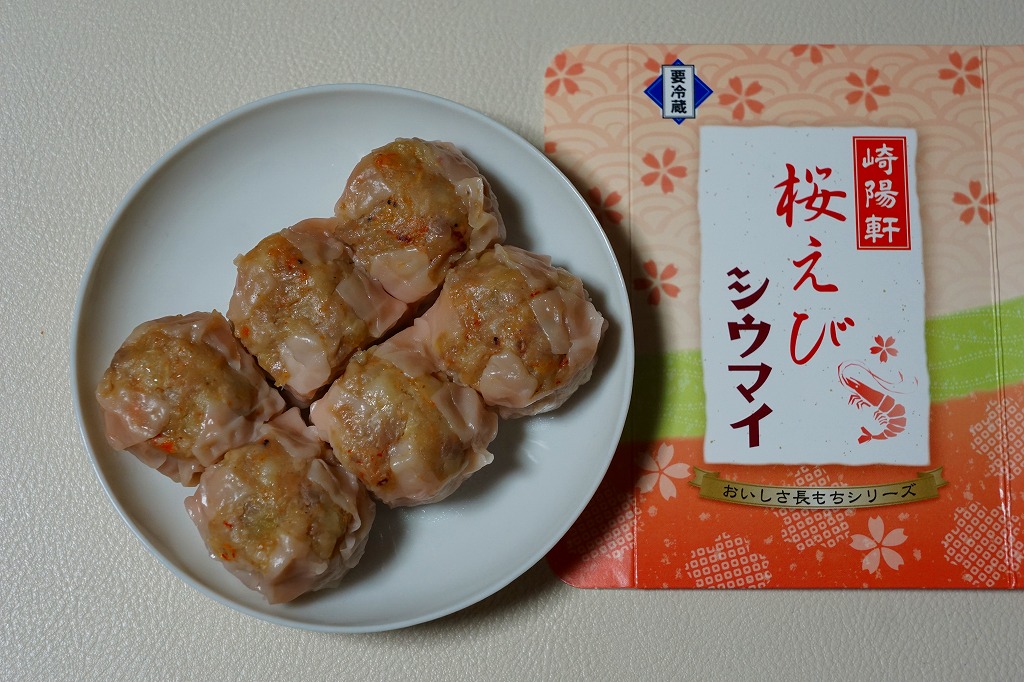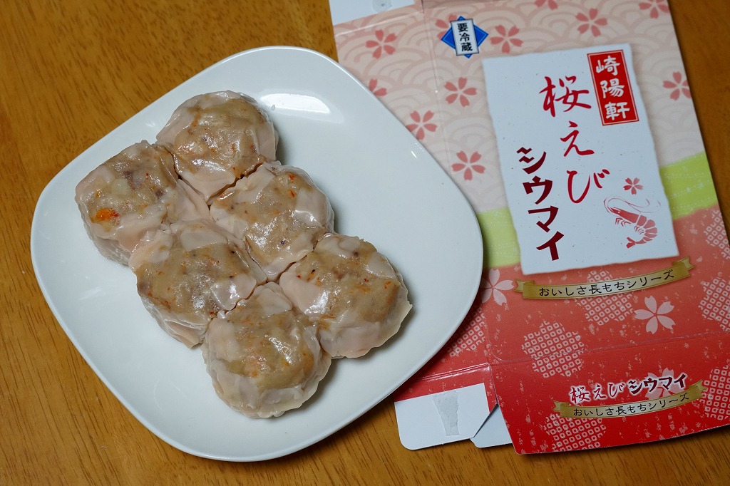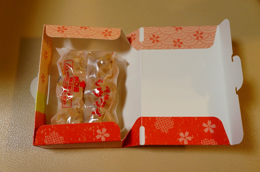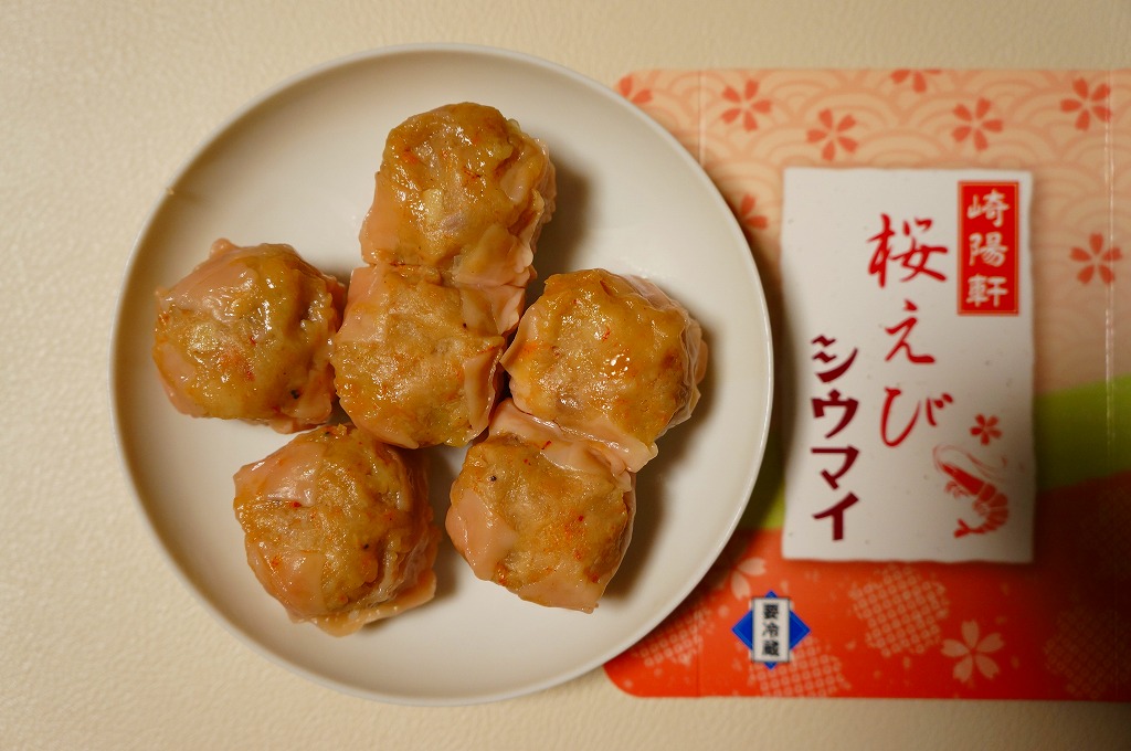 シウマイにはサクラエビに加えてキャベツとタケノコが混入されており、紅色と若草色が淡く出た春らしい見栄えで、包装紙も花いっぱい。しかし食べると桜海老と豚肉が風味でケンカしているような気がした。