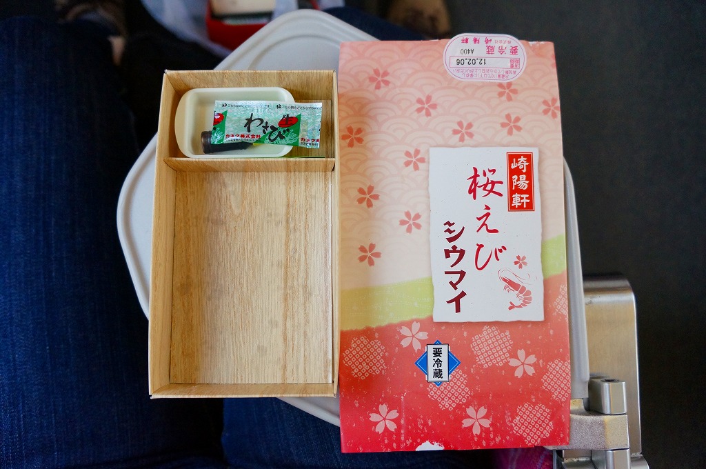 風味こそ通常の特製シウマイと差のない、少々軽めかなという程度だが、サクラエビのバリッとした食感と、タケノコのサクッとしった食感が時々現れてアクセントになる。しかし引き続き、醤油入れが「ひょうちゃん」でない点が寂しいところ。