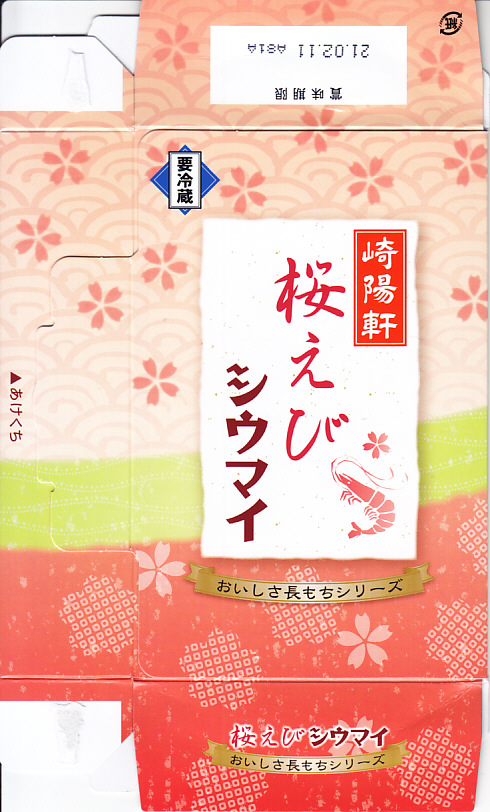 2021(令和3)年2月1日から4月15日まで販売された、季節限定の特製シウマイ。9年連続して、サクラエビやタケノコを混ぜた特製シウマイを6個、「おいしさ長もちシリーズ」のパッケージに詰め、冷蔵販売した。