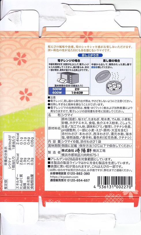 【終売】春彩桜えびシウマイ(550円)Shunsai Sakuraebi Shiumai (end of sales)