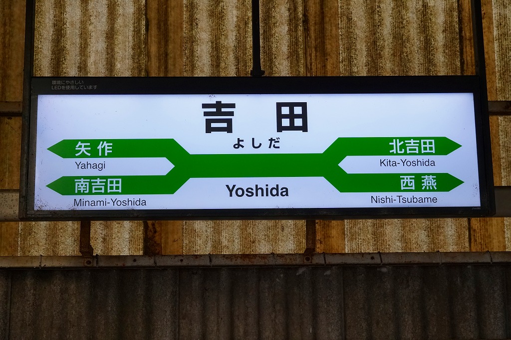 新潟駅から越後線の電車で約1時間。吉田駅は越後線と弥彦線が交わる駅。ここに1913(大正2)年から1970年頃まで駅弁が存在したことは、もはや忘れ去られている。1912(大正元)年8月25日開業、新潟県燕市吉田堤町。