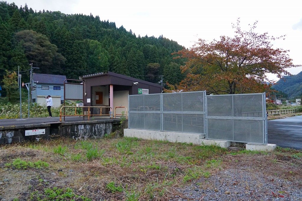 新潟駅から信越本線と磐越西線を乗り継いで2時間弱。阿賀町は新潟県の東部で阿賀野川が流れる、人口約1万人の町。会津と新潟や日本海を結ぶ街道や舟運が通ったほか、大規模な銅山や発電ダムや肥料工場が立地した工業都市でもあった。日出谷駅は当時も今も小さな中間駅であるが、過去には蒸気機関車の車庫があり給水地であり、列車の停車時間に売られるとりめしが名物であった。1914(大正3)年11月1日開業、新潟県東蒲原郡阿賀町日出谷。