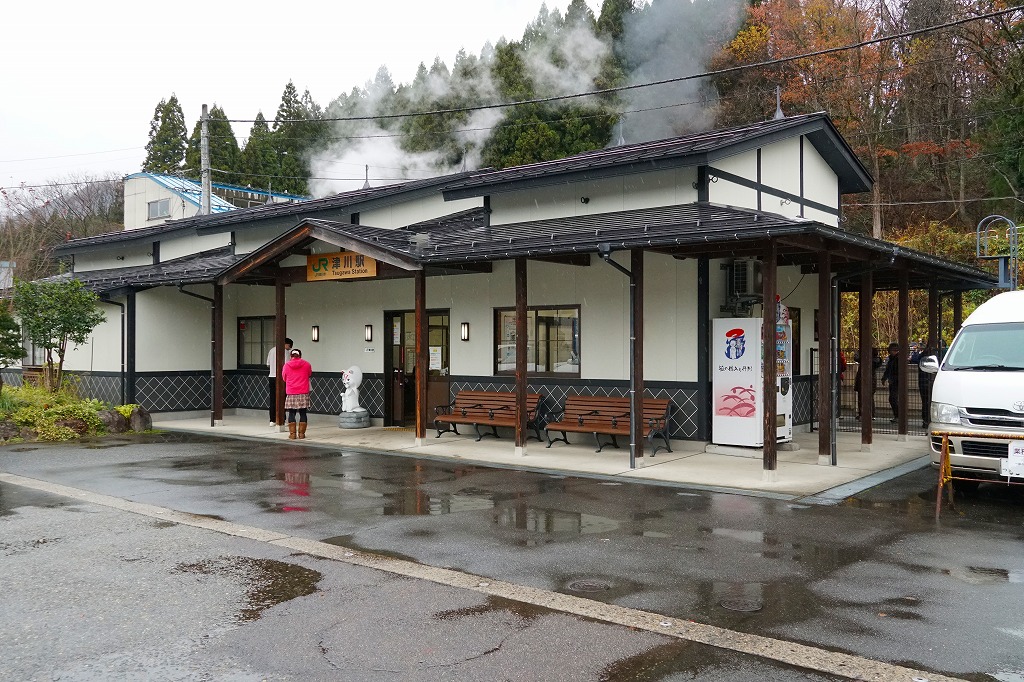 新潟駅から信越本線と磐越西線を乗り継いで約1時間半。阿賀町の中心市街地は日出谷駅より津川駅のほうが近く、ここにもかつて阿賀野川の河港があった。駅弁はなかったが、2023年10月に日出谷駅弁の復元が津川駅で実施され、観光列車「SLばんえつ物語」会津若松駅行き列車の停車時間にホーム上で弁当などが売られるようになった。1913(大正2)年6月1日開業 新潟県東蒲原郡阿賀町角島。