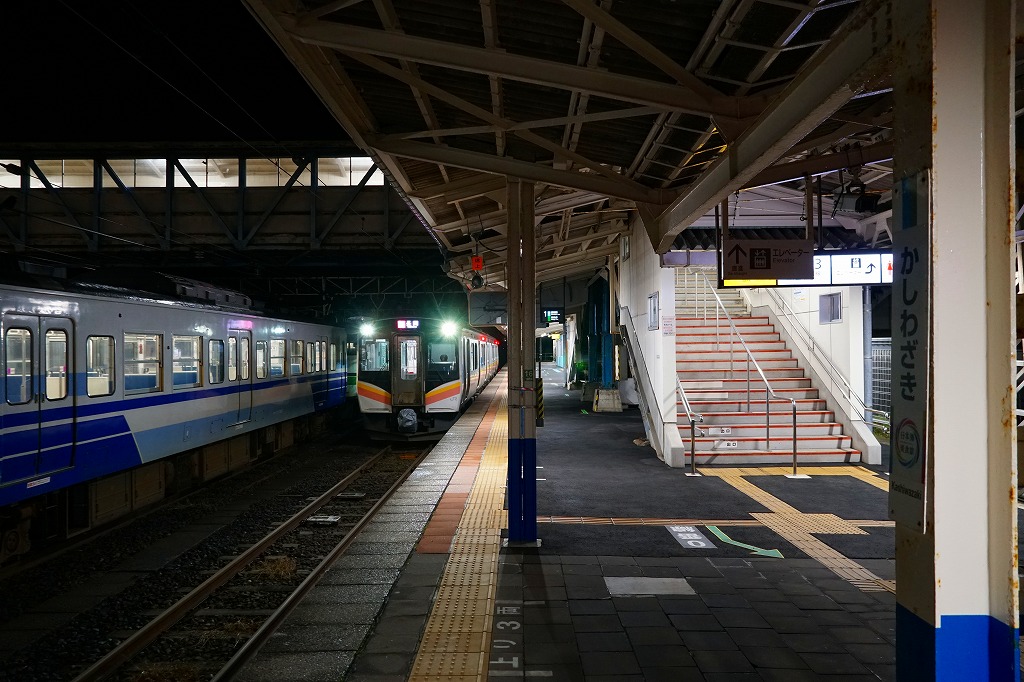 新潟駅から特急しらゆきで約80分。柏崎市は新潟県中部の中越地方で日本海に面した、人口約8万人の宿場町。明治時代に西山油田で栄え、製造業の工業都市となり、世界最大の原子力発電所が立地する。駅弁は1902(明治35)年頃から1960年代過ぎまで売られ、幹線鉄道の主要駅にもかかわらず早くに消えた。1897(明治30)年8月1日開業、新潟県柏崎市駅前一丁目。