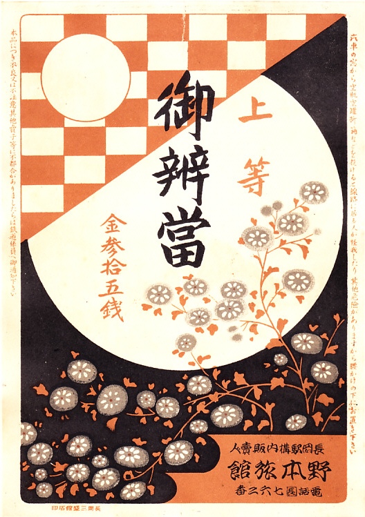 入手状況から1929(昭和4)年のものと思われる、昔の長岡駅弁の掛紙。菊花の絵柄には、おそらく意味はないと思う。
