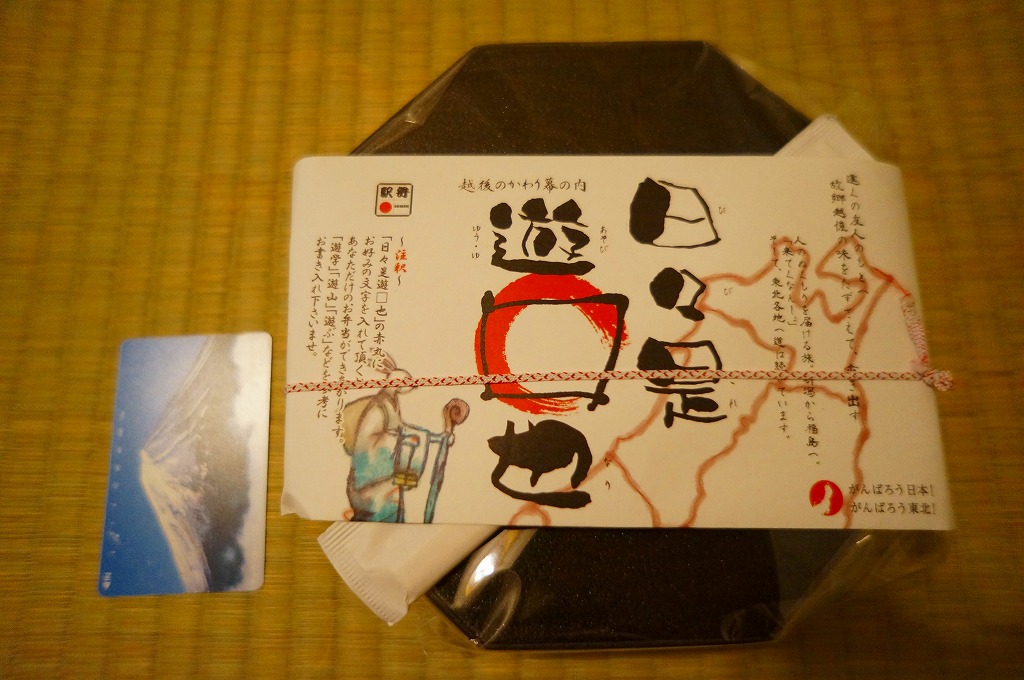 2011(平成23)年11月20日に、4県12社の駅弁業者を集めた新潟駅での駅弁大会「がんばろう東北!被災地応援駅弁合戦」で発売、翌年の春まで販売された期間限定駅弁。名前は「ひびこれあそび□なり」で、□の部分にお好みの文字を入れて欲しいそうな。