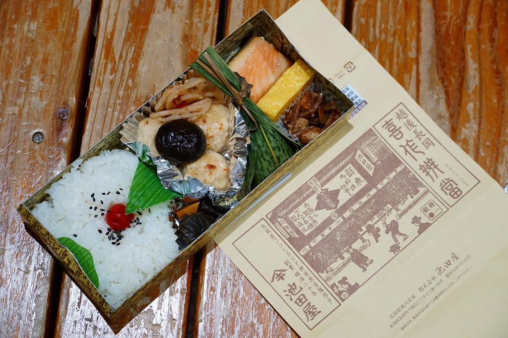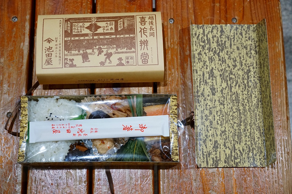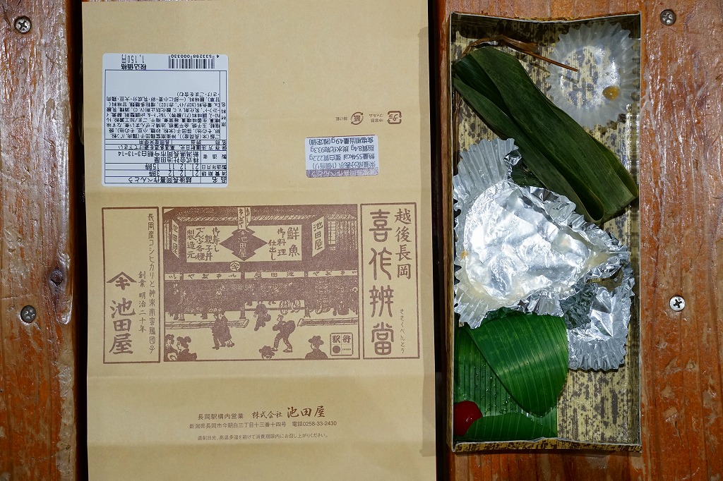 東京駅から新幹線で約100分。長岡市は新潟県の中央に位置する、人口約26万人の城下町。かつては信濃川の水運で、今は鉄道や国道や高速道路が分岐する交通の要衝は、明治時代に油田で栄え、商工業が興った。駅弁は明治時代から売られ、第二次大戦後から21世紀に入るまで3社の駅弁屋が競う激戦地であったが、2004年と2009年に1社ずつ消え、今は新幹線ホーム上でのみひっそりと売られる。1898(明治31)年6月16日開業、新潟県長岡市大手通。
