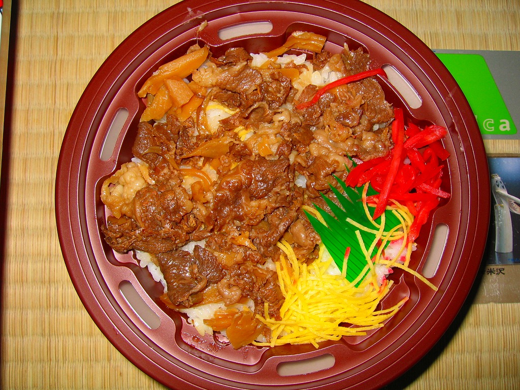 中身は白御飯の上に牛肉うま煮を載せる牛めし。濃く赤黒い牛肉は、時雨煮を通り越してビーフジャーキーのような、赤身が固く脂身が筋になるもので、これは特徴なのかどうか。価格は2004年の発売時で800円、2010年時点で840円、2014年時点で890円、2020年時点で990円、2023年時点で1,090円、8月から1,120円。