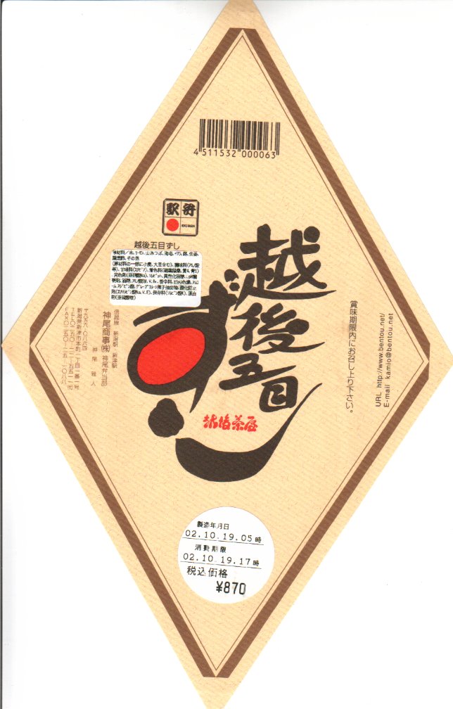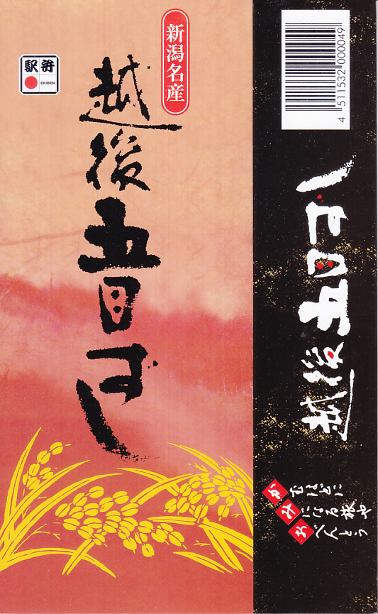 2010(平成22)年11月14日に購入した、新津駅弁のパッケージ。上記の2011年のものと、まったく同じ。上記の現地版と、この催事版で、消費期限シールの表記が異なる。