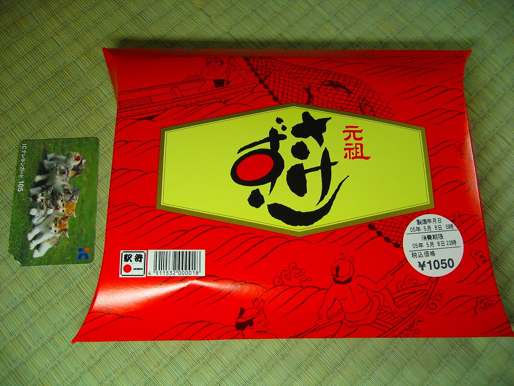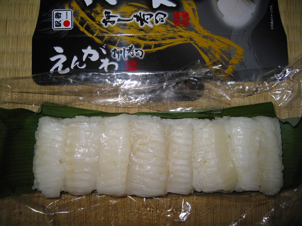 2010(平成22)年秋の新商品として、10月までに発売。カラスガレイの真っ白なえんがわを新潟県産コシヒカリの酢飯に合わせた押寿司を1本、笹の葉に包み、透明なビニールシートで巻き、甘酢生姜と醤油とわさびを添付し、中身のイメージ写真とカレイのイラストを印刷したボール紙の箱に詰める。これはきっと、2007(平成19)年12月限りで「しばらく遠い旅に出て」しまった「元祖ひらめずし」の生まれ変わりではないかと思う。脂がジューシーで、白さがまぶしく、飯と具のとろけ具合がたまらない。