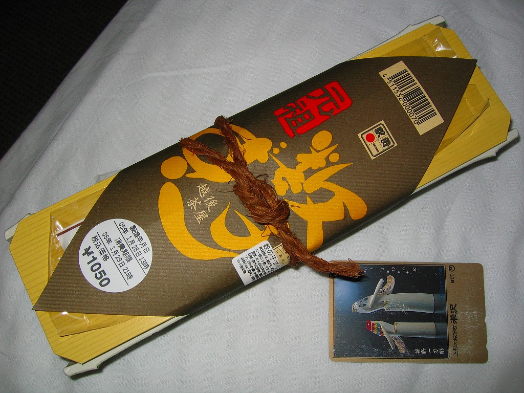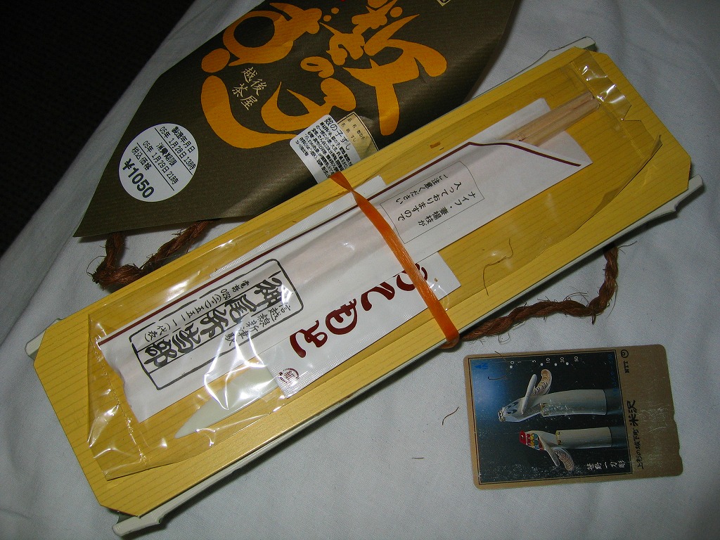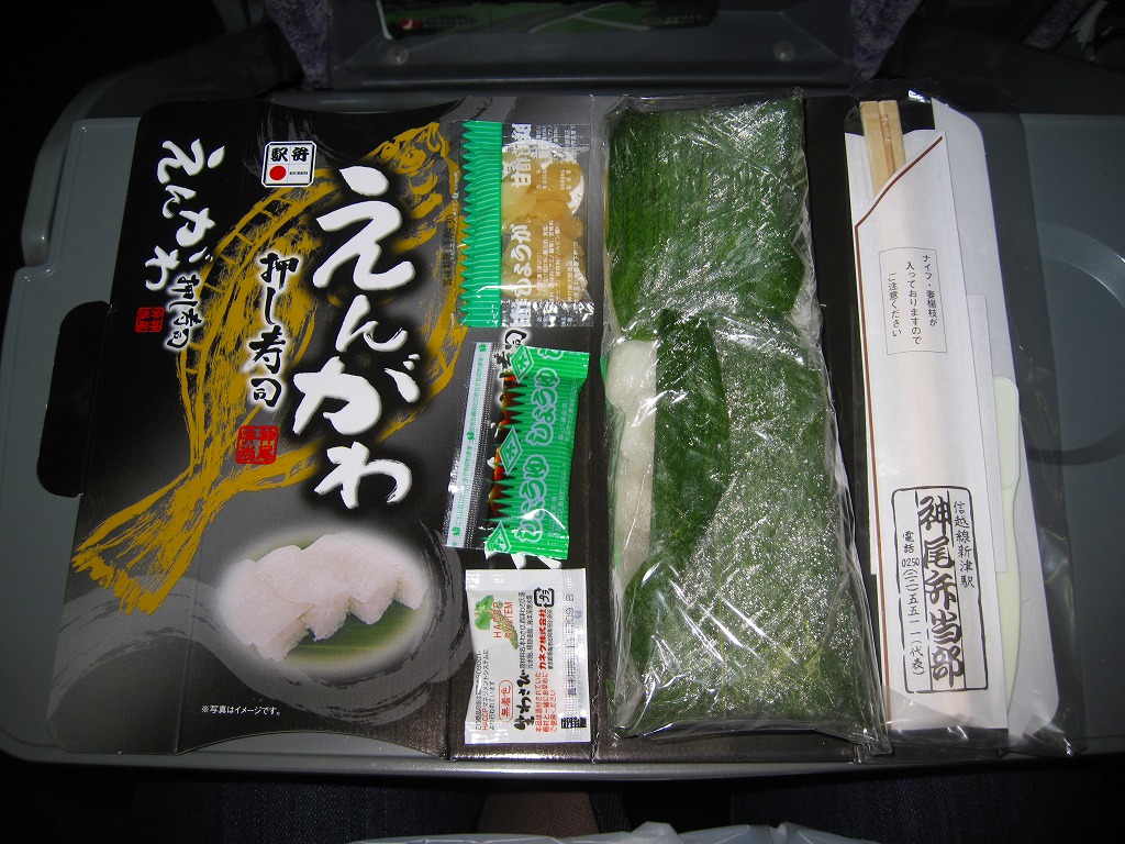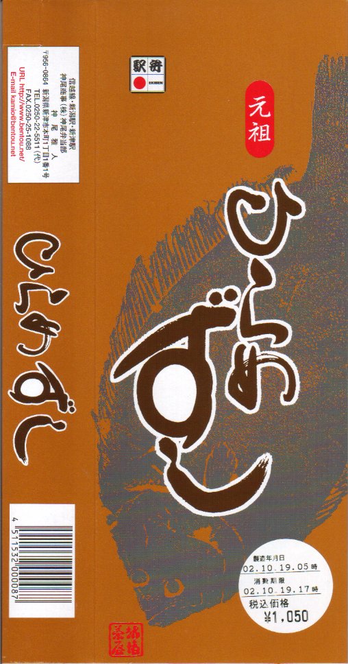 口に含むと軽い舌触りとほのかな白身魚の香りを一瞬だけ感じさせながら、こちらも香り高い新潟米コシヒカリにすっととけ込んでいく。これは美味い駅弁と奨められる品物。日本レストランエンタプライズ(NRE)が秋冬に都内の駅で開催する駅弁大会でいつも見られる。しかし残念ながら2007年12月末で、材料手配の都合により終売となった模様。