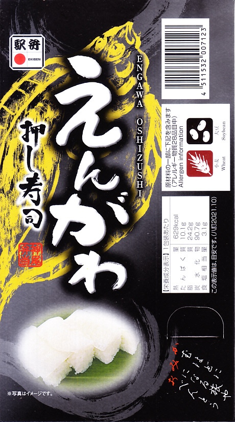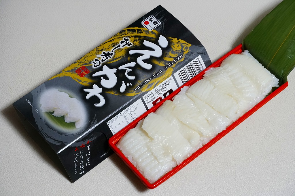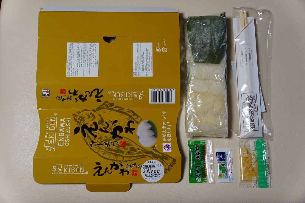 上記の駅弁「えんがわ押し寿司」の、2023(令和5)年時点での姿。上記の2024年のものと変わらない。